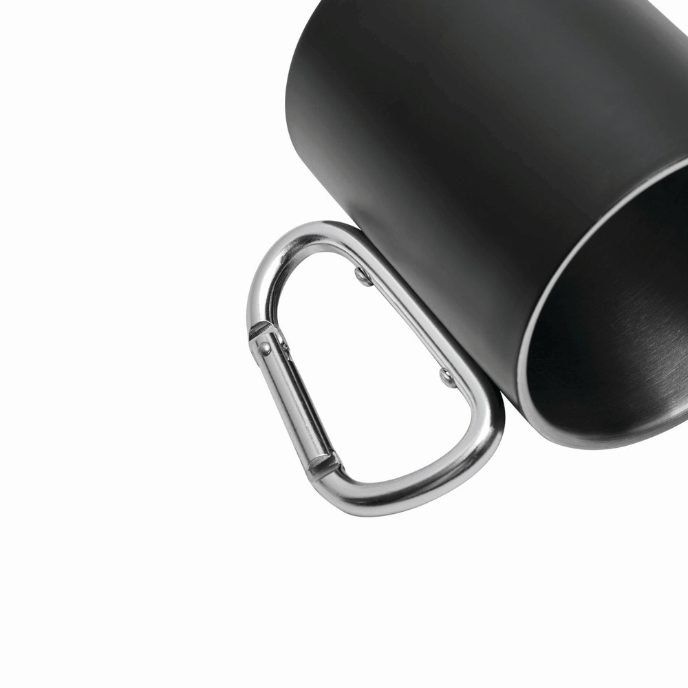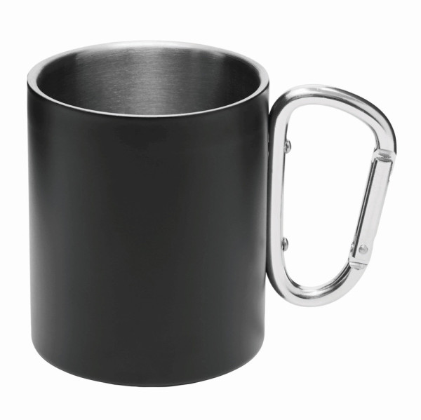 Edelstahl-Becher DEEP VALLEY, doppelwandig: außen farbig und innen silber, mit silbernem Karabinerhaken (der Karabiner ist NICHT als Sicherung beim Klettern geeignet), Füllmenge ca. 300 ml