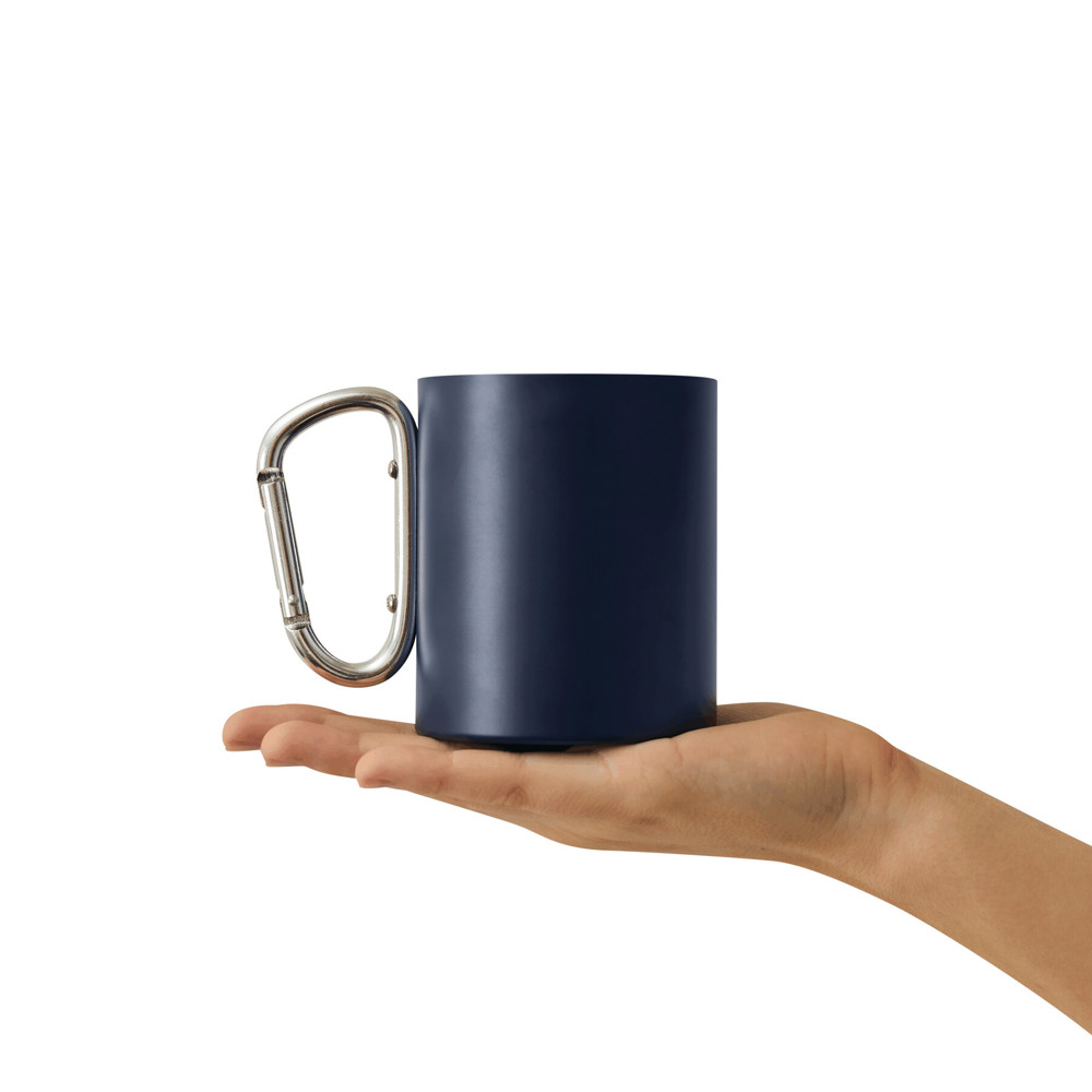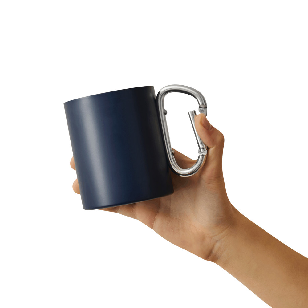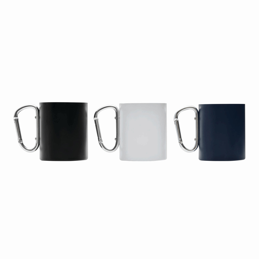 Edelstahl-Becher DEEP VALLEY, doppelwandig: außen farbig und innen silber, mit silbernem Karabinerhaken (der Karabiner ist NICHT als Sicherung beim Klettern geeignet), Füllmenge ca. 300 ml