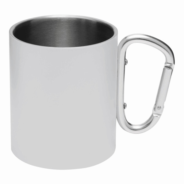 Edelstahl-Becher DEEP VALLEY, doppelwandig: außen farbig und innen silber, mit silbernem Karabinerhaken (der Karabiner ist NICHT als Sicherung beim Klettern geeignet), Füllmenge ca. 300 ml