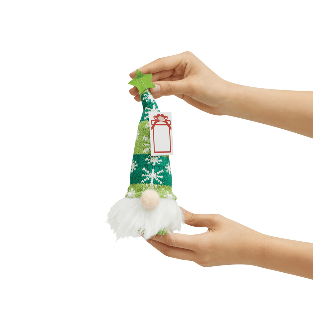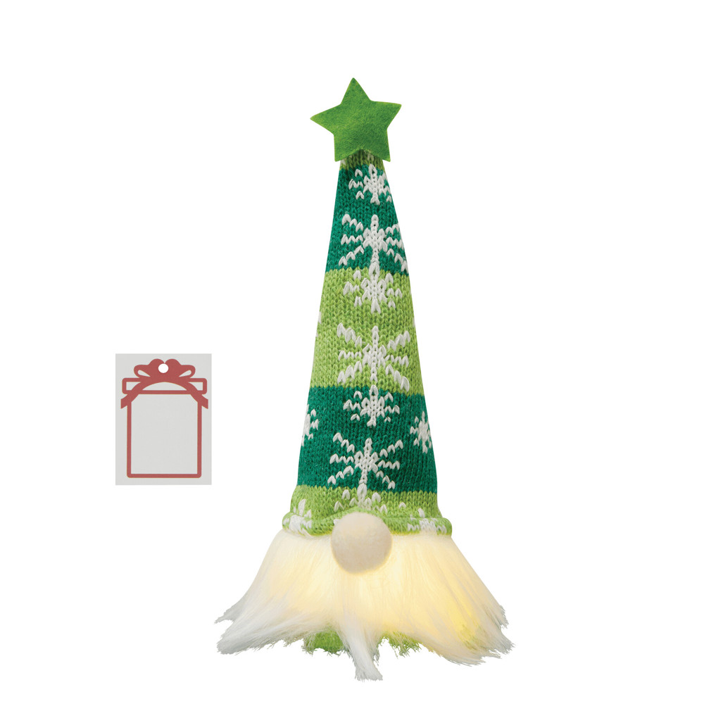 Weihnachts-Wichtel EMIL, mit Licht: Woll-Zipfelmütze, Mütze lässt sich durch integrierten Draht beliebig formen, mit an- und ausschaltbarer Beleuchtung, batteriebetrieben (2x LR44 Knopfzellen enthalten), mit Geschenkanhänger zum Bedrucken