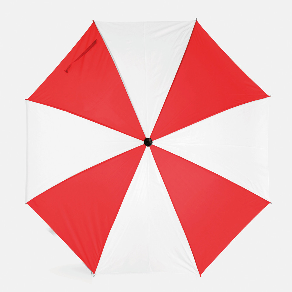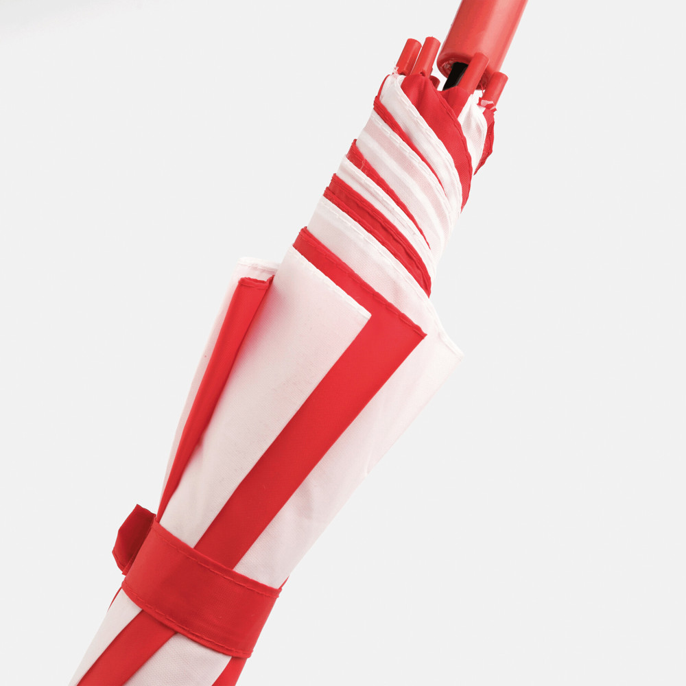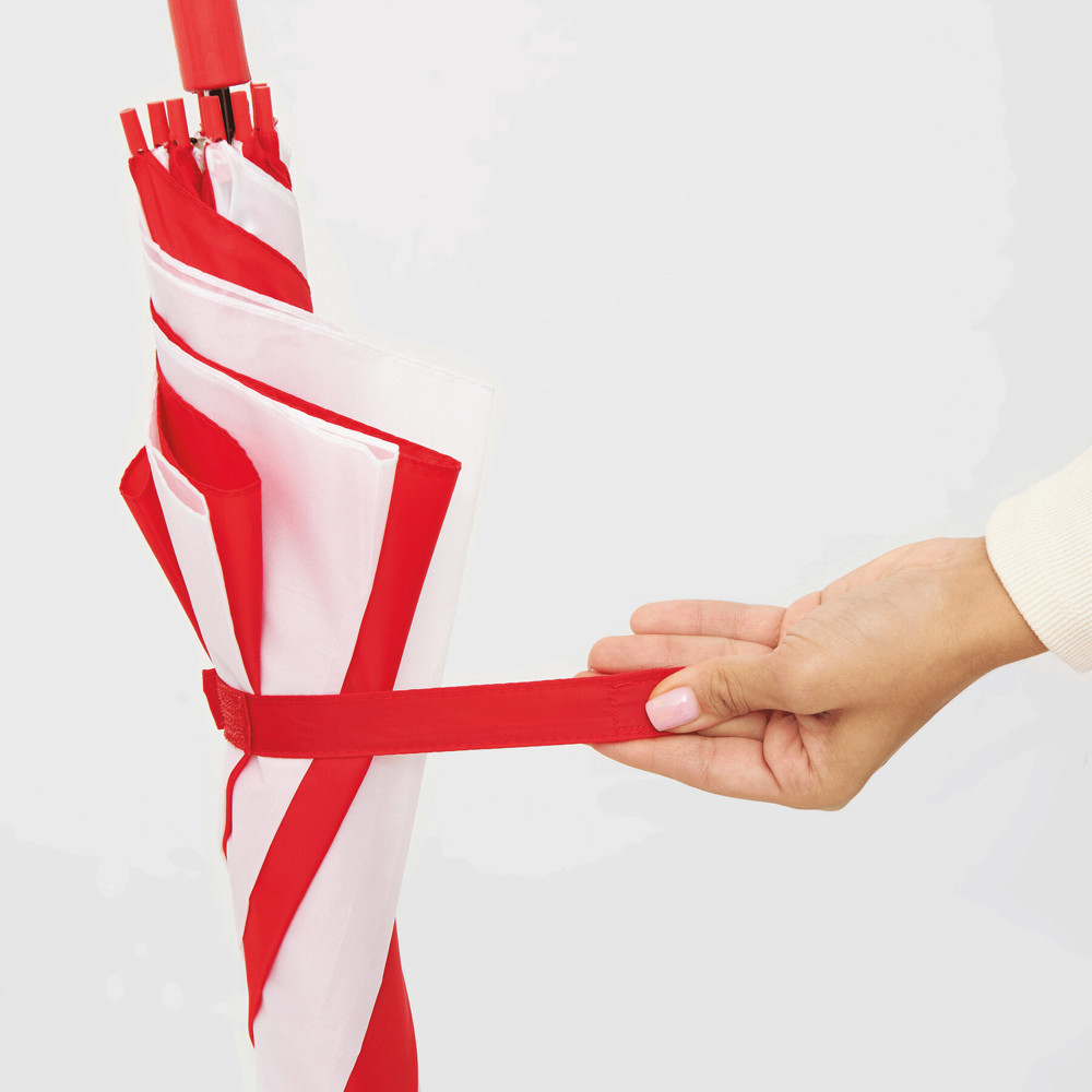Automatischer Stockschirm DISCO: Metallstock und -speichen, Kunststofftips und -Rundhakengriff, Polyester-Bespannung, Schließband mit Klettverschluss