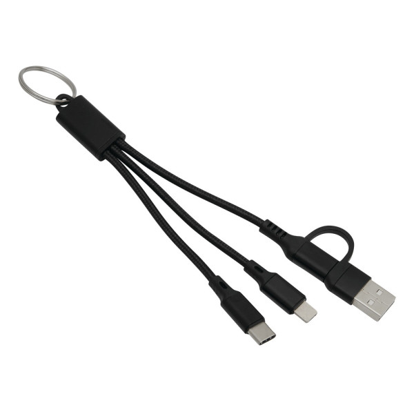 Ladekabel FANTAIL: zum Aufladen von Smartphones und USB-betriebenen Geräten, inkl. 2 Ladesteckern (USB Typ C, Kombistecker Micro-USB/Lightning®), Kabellänge ca. 18 cm, kombinierter USB Typ A / Typ C Eingangsstecker, mit Schlüsselring
