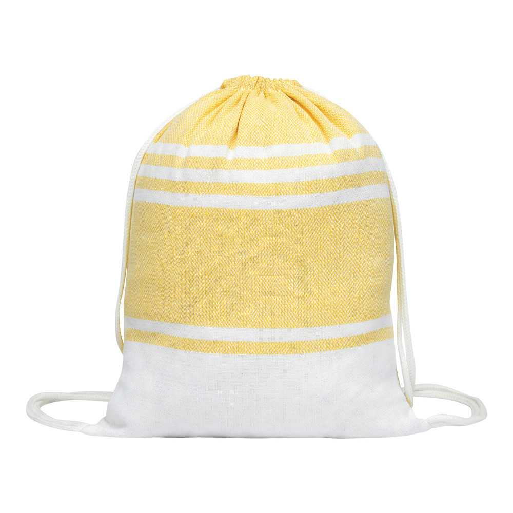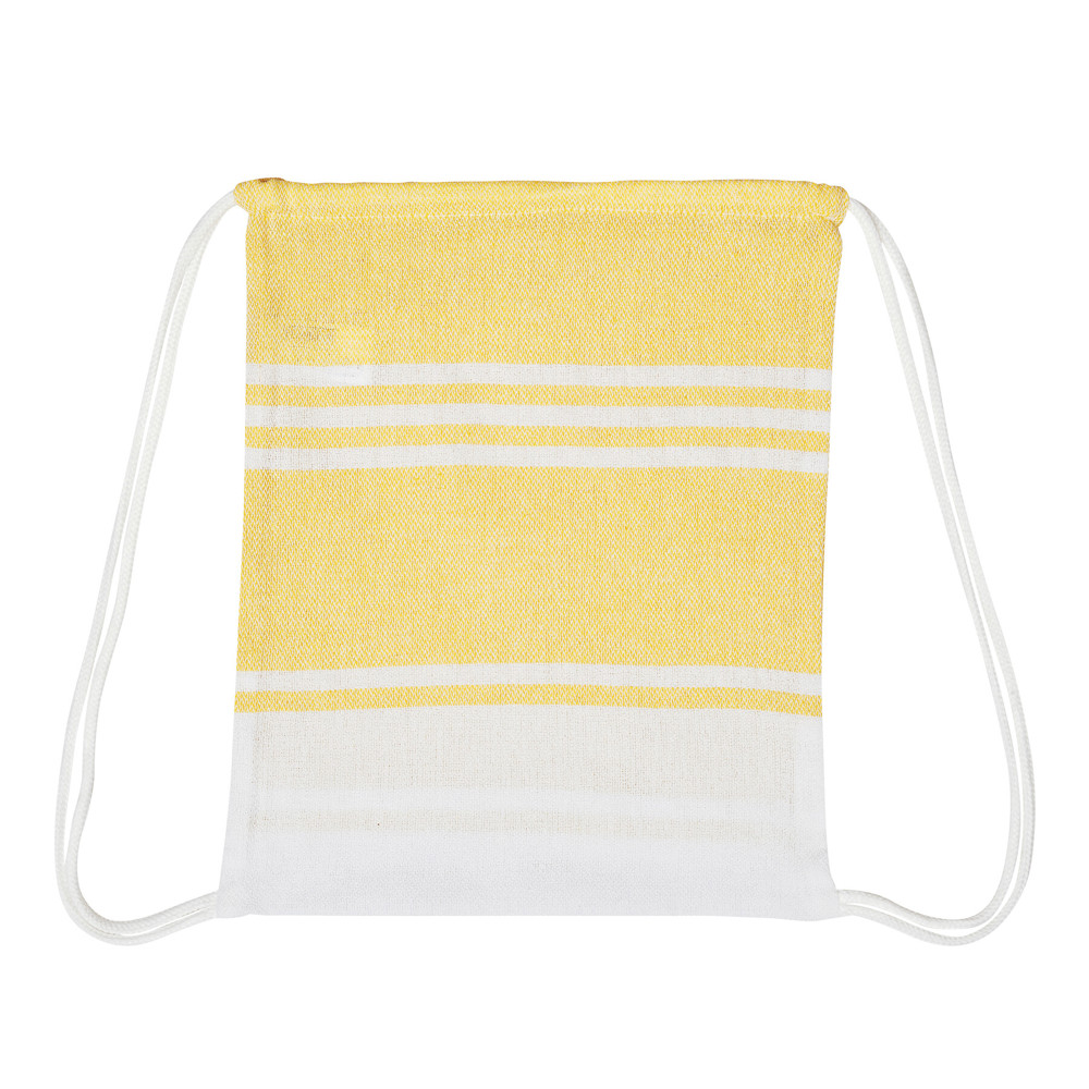 Großes Strandtuch / Saunatuch SUN & STEAM: mit weißen Streifen und Fransen, in farbig passender Tasche mit Kordelzug