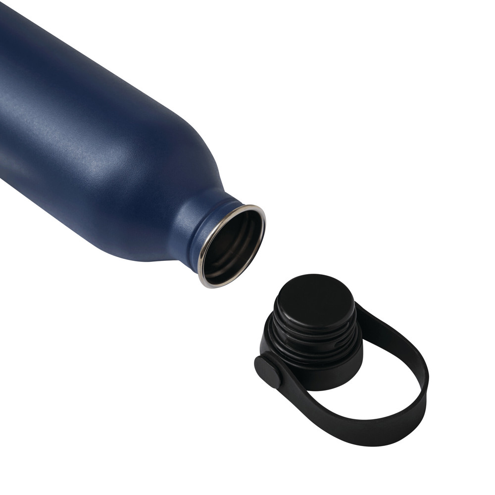 Isolierflasche GET REFRESH, einwandig: aus Edelstahl, matte Pulverlackierung, schwarzer Kunststoff-Deckel mit sicherem Schraubverschluss, Silikon-Dichtring und Silikon-Trageschlaufe, obere Deckelfläche aus Edelstahl, Füllmenge ca. 550 ml, hält ca. 2 Stunden warm und bis zu 4 Stunden kalt