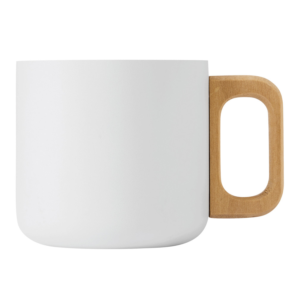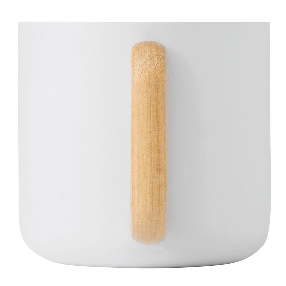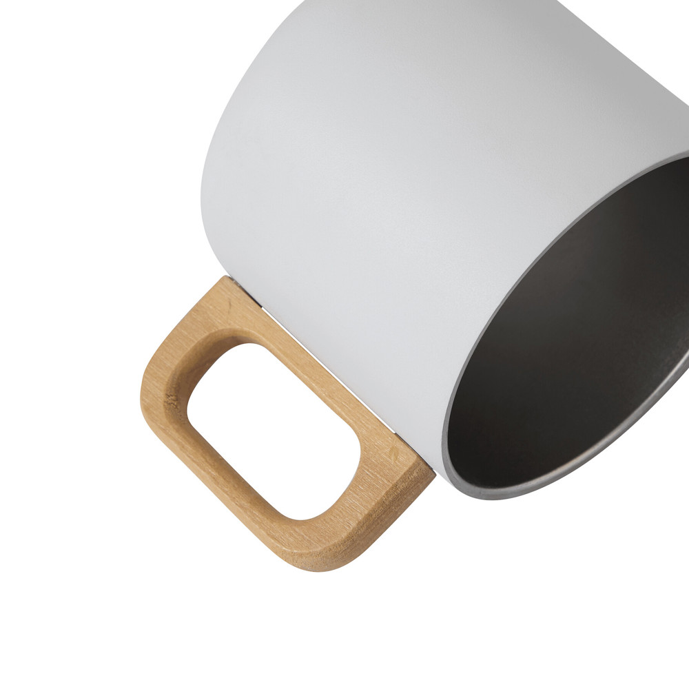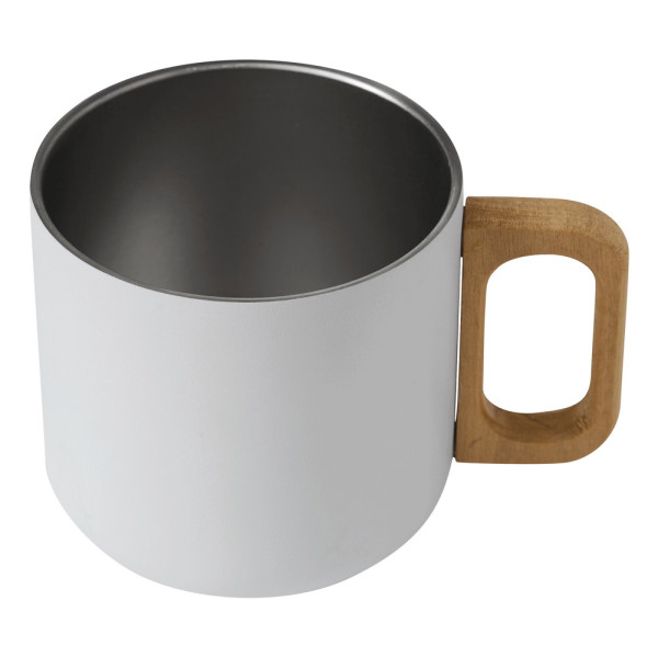 Edelstahl-Becher RUSTIC TRIP, doppelwandig: mit Holzhenkel, außen farbige matte Pulverlackierung und innen silber, Füllmenge ca. 350 ml, in Box