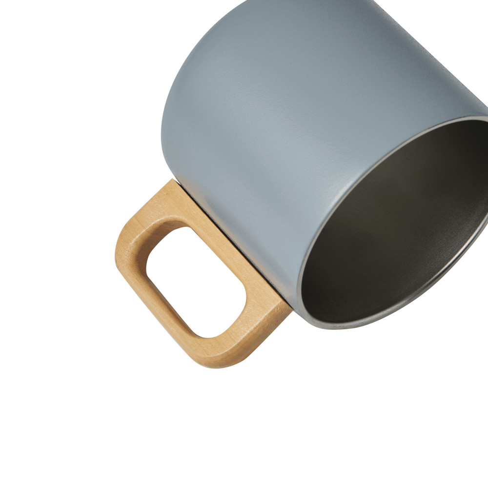 Edelstahl-Becher RUSTIC TRIP, doppelwandig: mit Holzhenkel, außen farbige matte Pulverlackierung und innen silber, Füllmenge ca. 350 ml, in Box