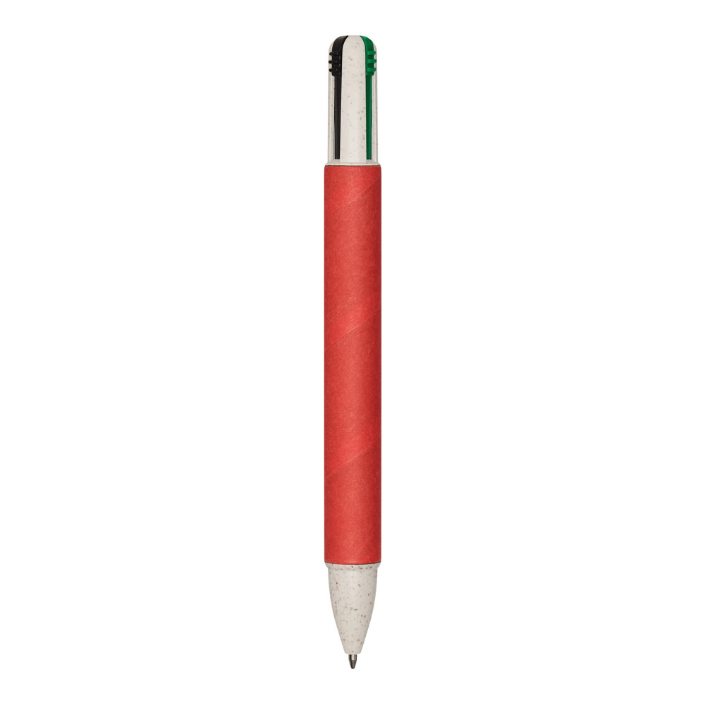 Kugelschreiber MUCO, vierfarbig: aus Weizenstroh/ABS, Schaft ummantelt mit recyceltem Karton, Druckmechanismus, Kugelschreiberminen in schwarz-, rot-, blau- und grünschreibend