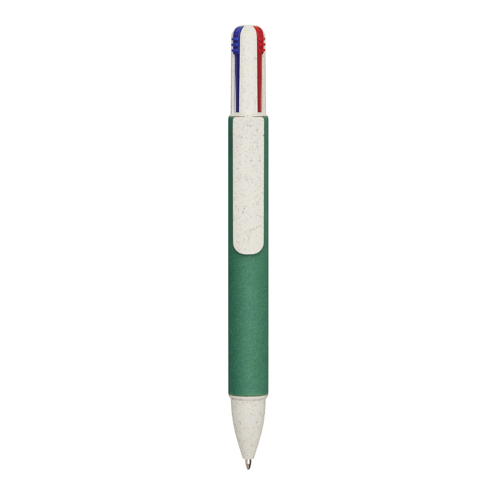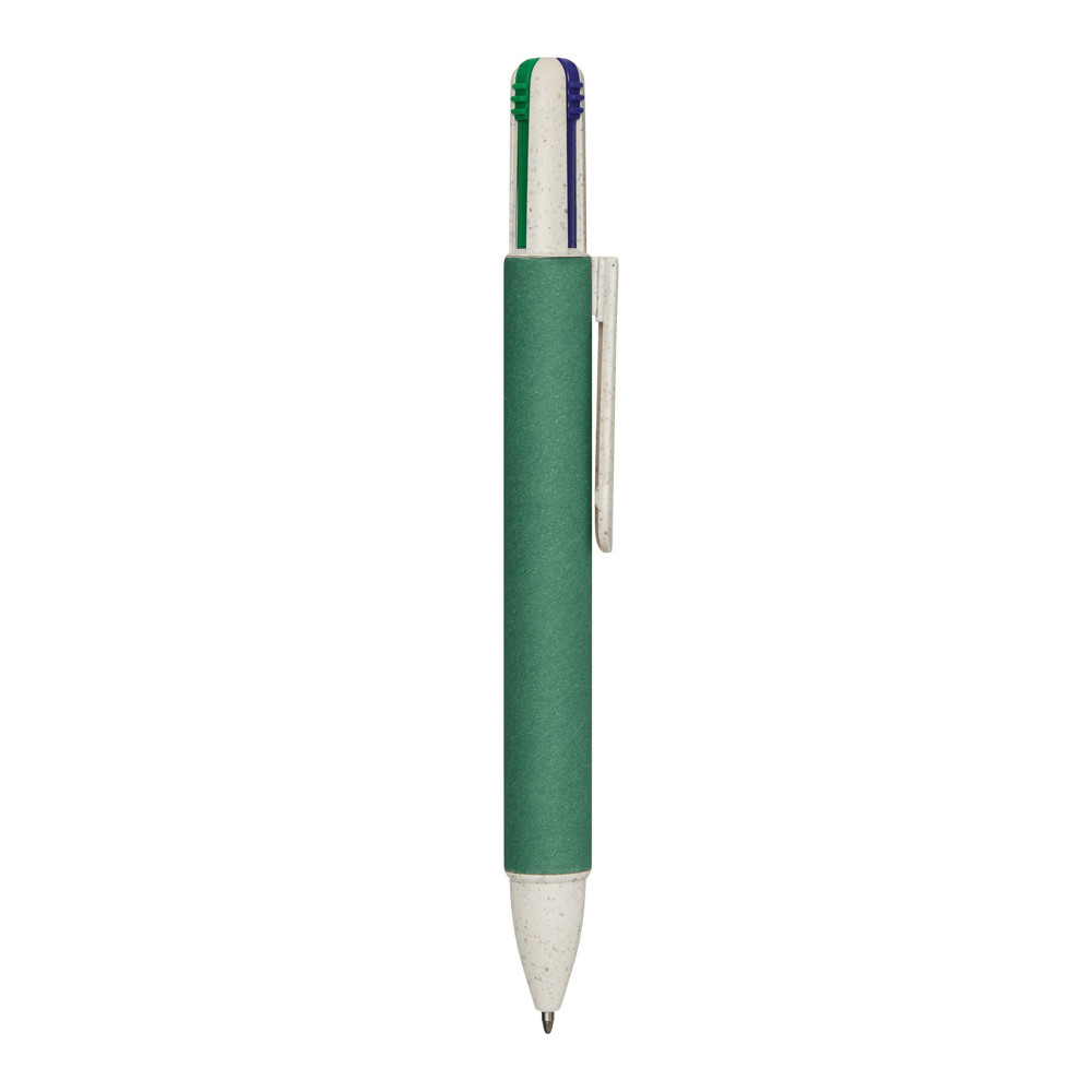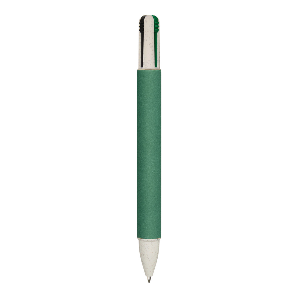Kugelschreiber MUCO, vierfarbig: aus Weizenstroh/ABS, Schaft ummantelt mit recyceltem Karton, Druckmechanismus, Kugelschreiberminen in schwarz-, rot-, blau- und grünschreibend