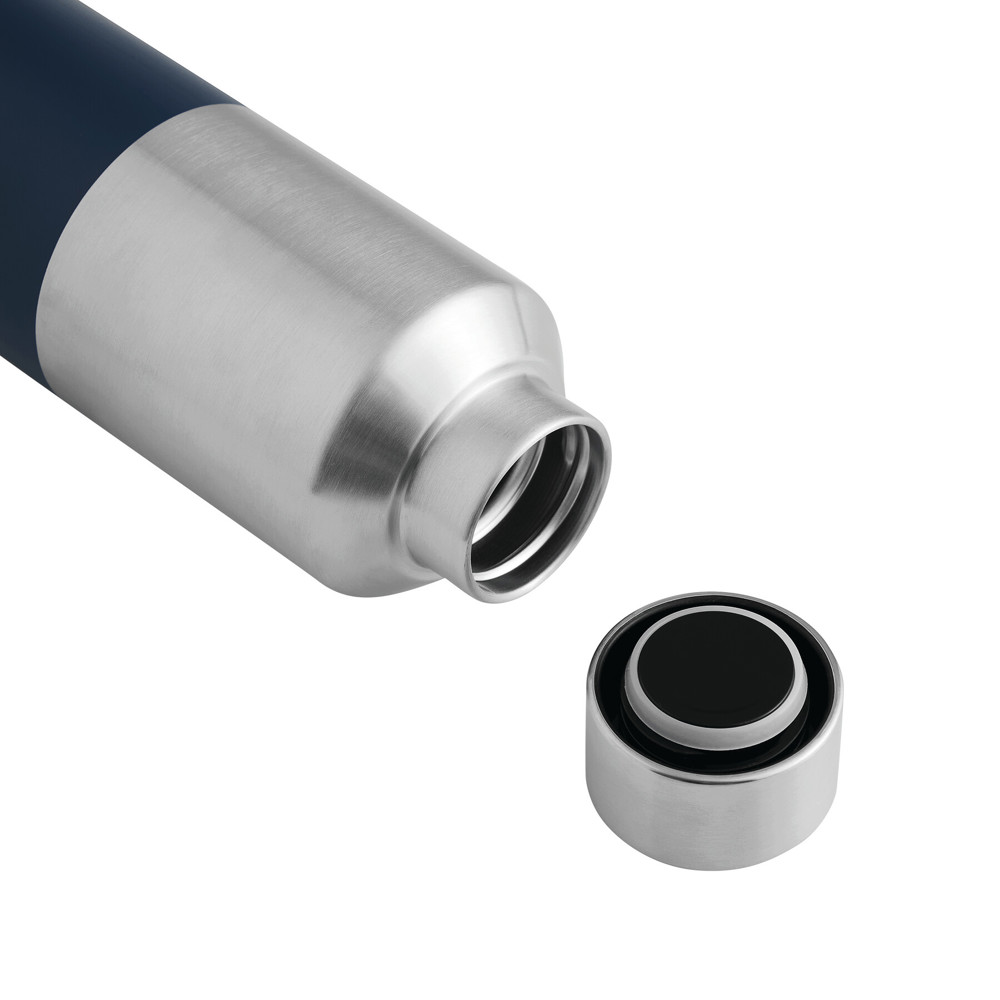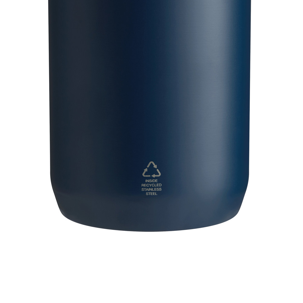 Vakuum-Isolierflasche STEECO, doppelwandig: innen aus recyceltem Edelstahl und außen aus Edelstahl, Deckel mit sicherem Schraubverschluss und Silikon-Dichtring, beschichteter Boden für gute Oberflächenhaftung, Füllmenge ca. 600 ml, hält ca. 8 Stunden warm und bis zu 12 Stunden kalt, in Box