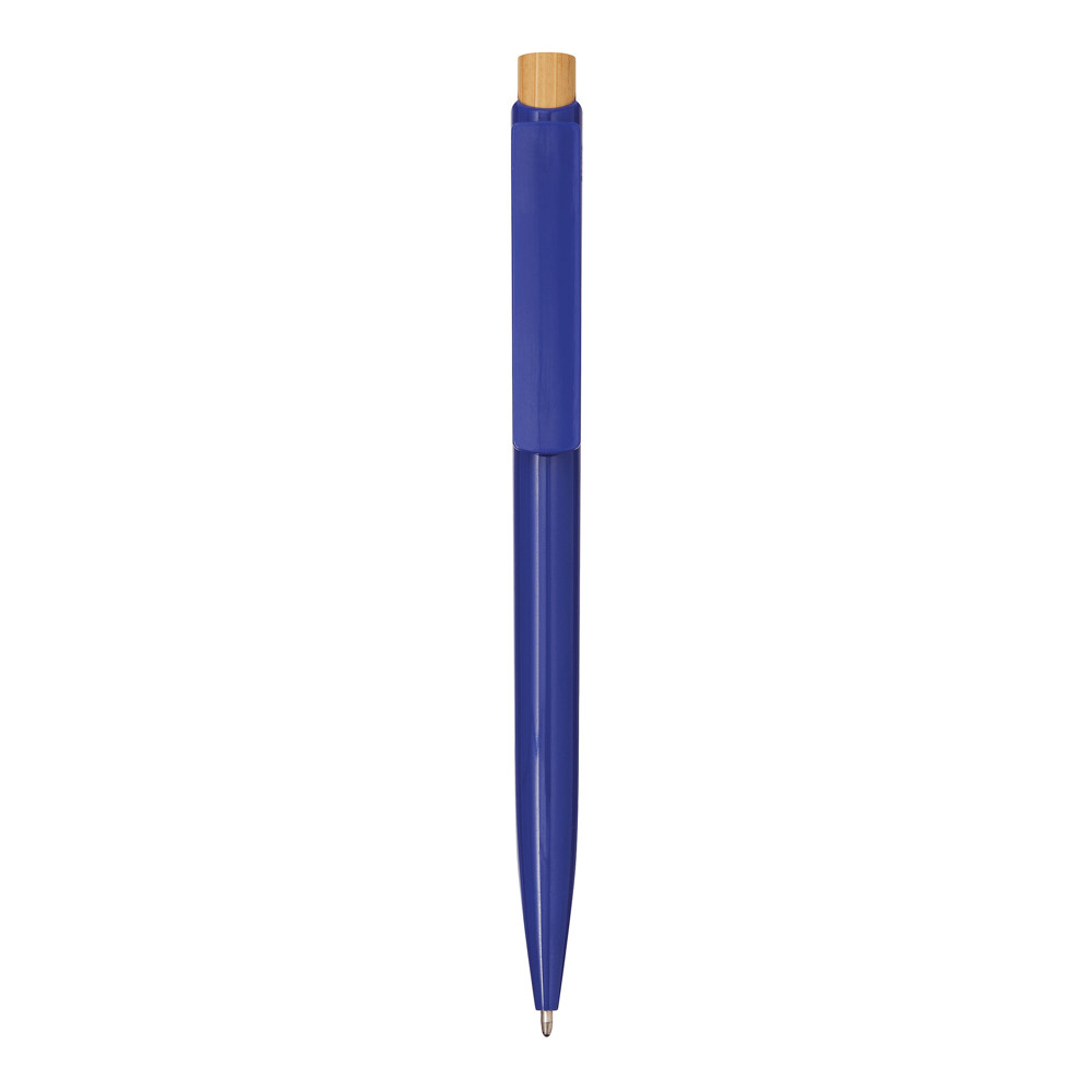 Kugelschreiber BAPU: mit Schaft aus recyceltem Kunststoff, Drücker aus Bambus, Druckmechanismus, blauschreibend