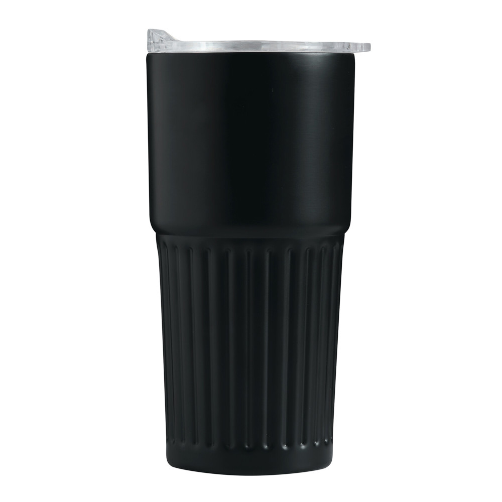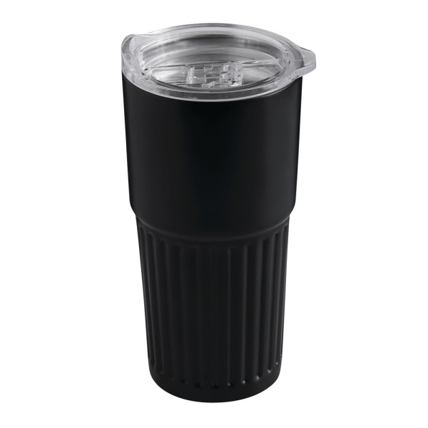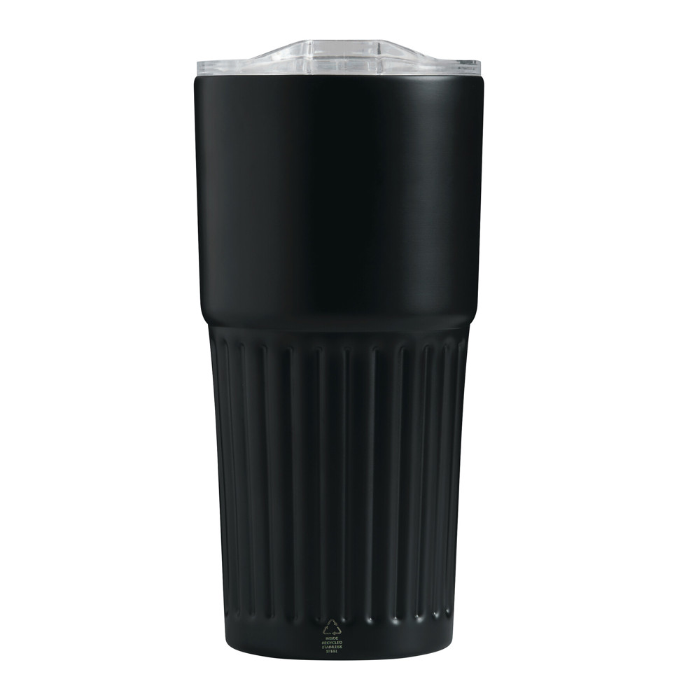 Vakuum-Isolierbecher WAVE LINE, doppelwandig: innen aus recyceltem Edelstahl und außen aus Edelstahl, transparenter Kunststoff-Deckel mit Silikon-Dichtring und integrierter Trinköffnung zum Aufschieben, beschichteter Boden für gute Oberflächenhaftung, Füllmenge ca. 600 ml, hält ca. 4 Stunden warm und bis zu 8 Stunden kalt, in Box