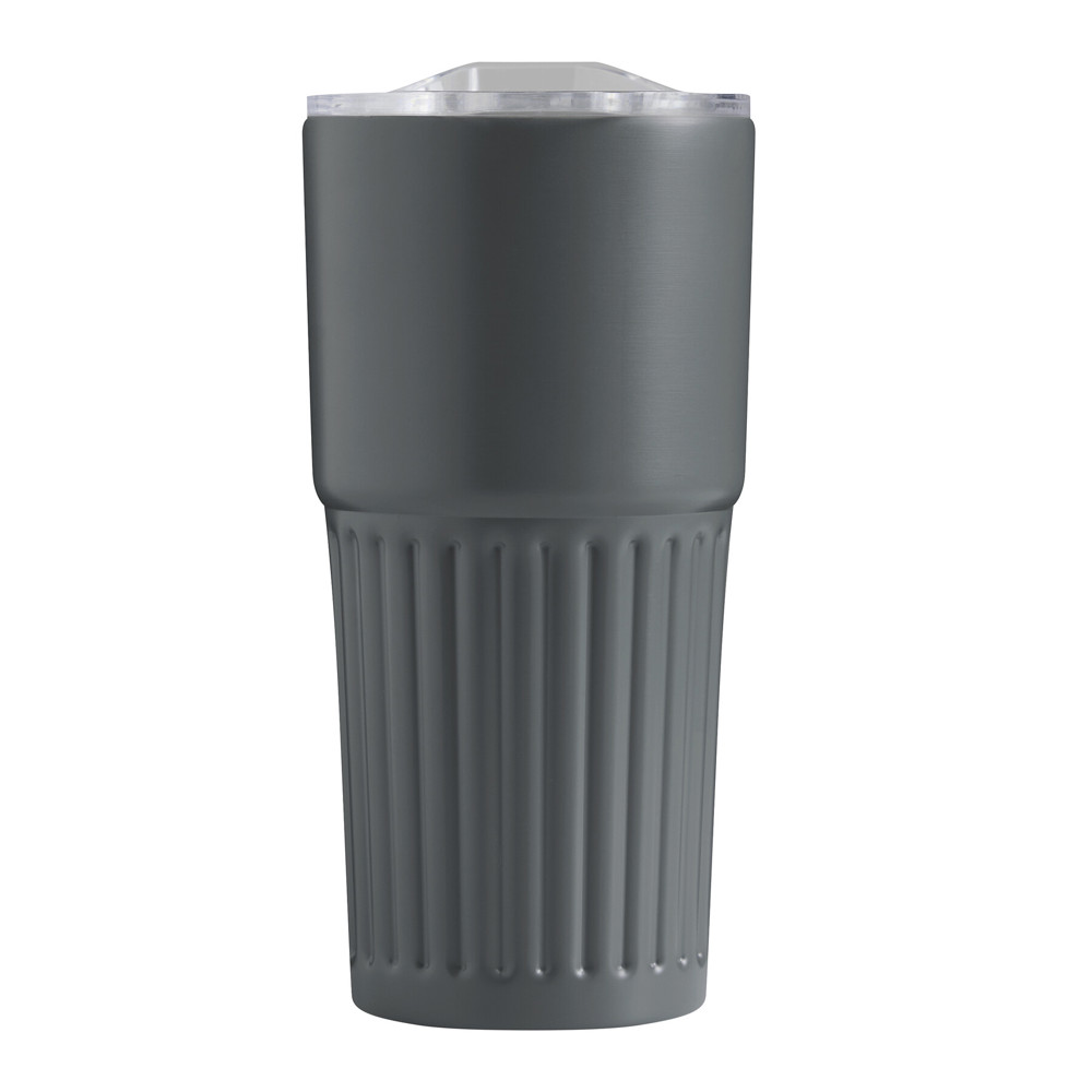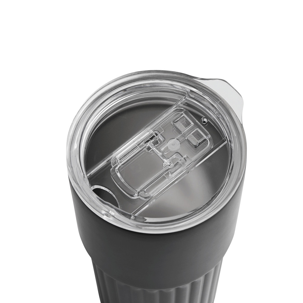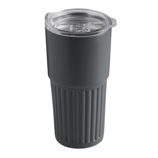Vakuum-Isolierbecher WAVE LINE, doppelwandig: innen aus recyceltem Edelstahl und außen aus Edelstahl, transparenter Kunststoff-Deckel mit Silikon-Dichtring und integrierter Trinköffnung zum Aufschieben, beschichteter Boden für gute Oberflächenhaftung, Füllmenge ca. 600 ml, hält ca. 4 Stunden warm und bis zu 8 Stunden kalt, in Box
