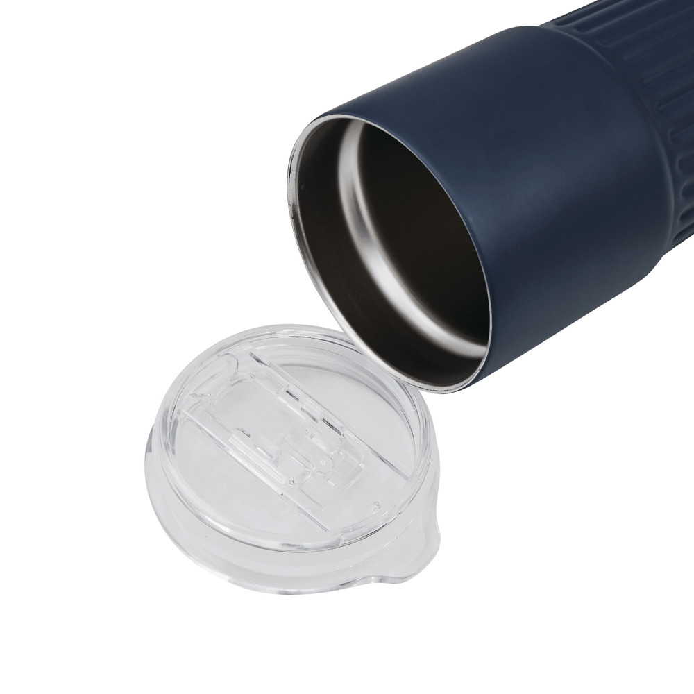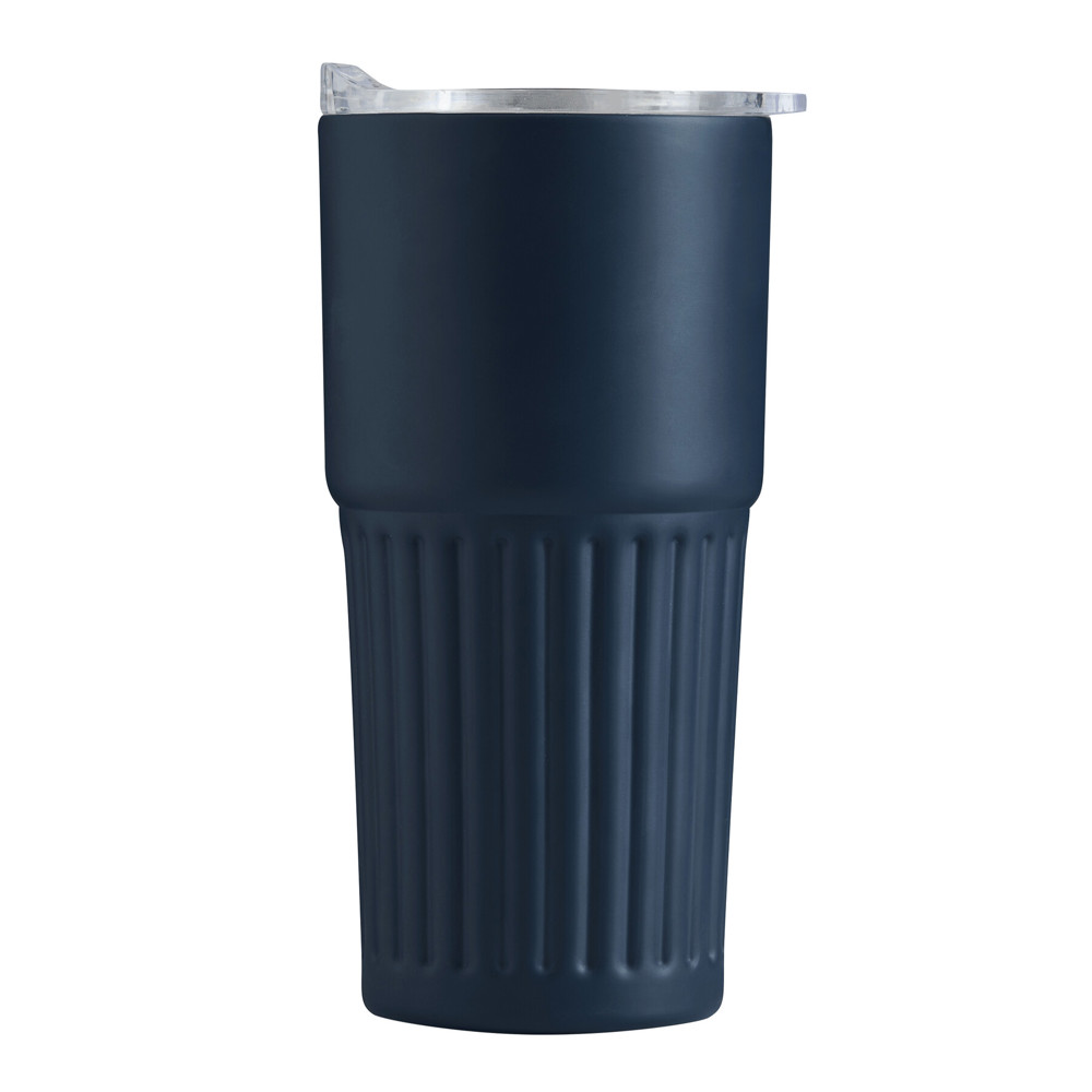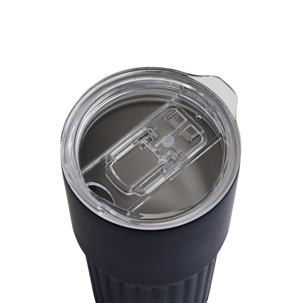 Vakuum-Isolierbecher WAVE LINE, doppelwandig: innen aus recyceltem Edelstahl und außen aus Edelstahl, transparenter Kunststoff-Deckel mit Silikon-Dichtring und integrierter Trinköffnung zum Aufschieben, beschichteter Boden für gute Oberflächenhaftung, Füllmenge ca. 600 ml, hält ca. 4 Stunden warm und bis zu 8 Stunden kalt, in Box
