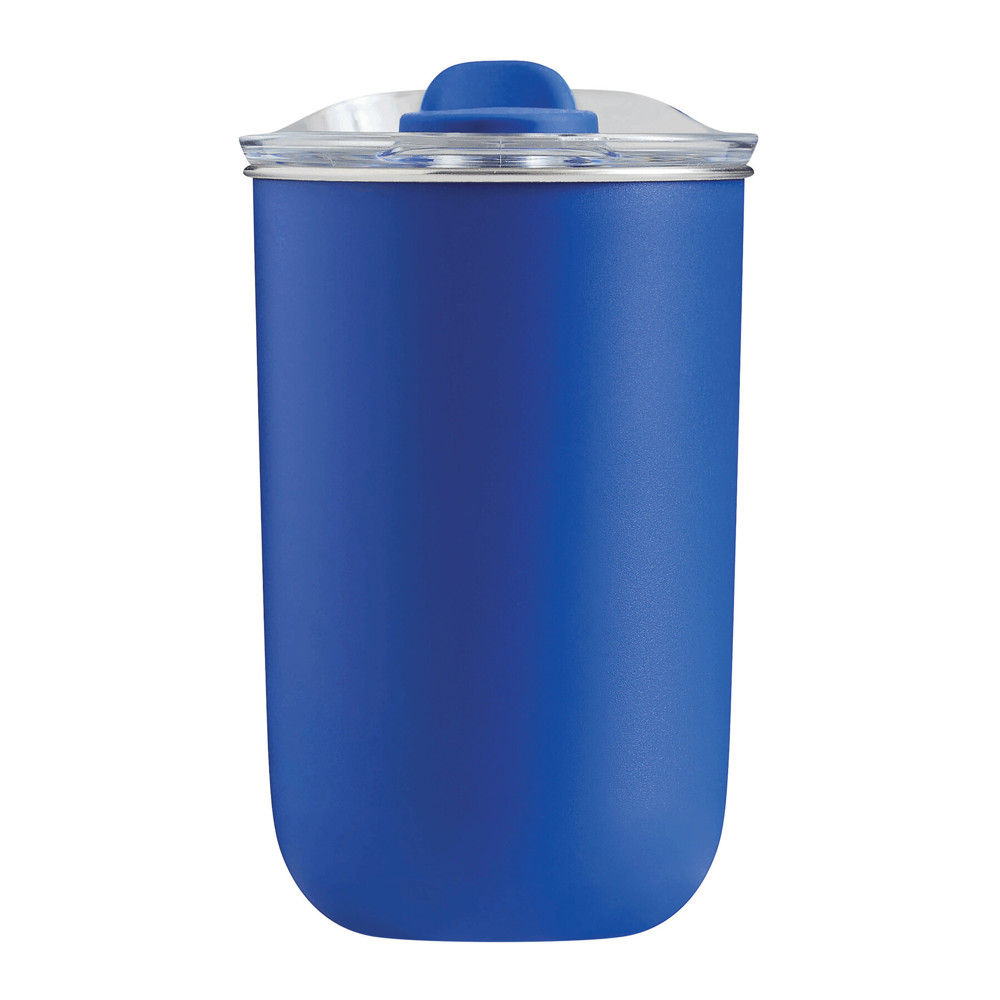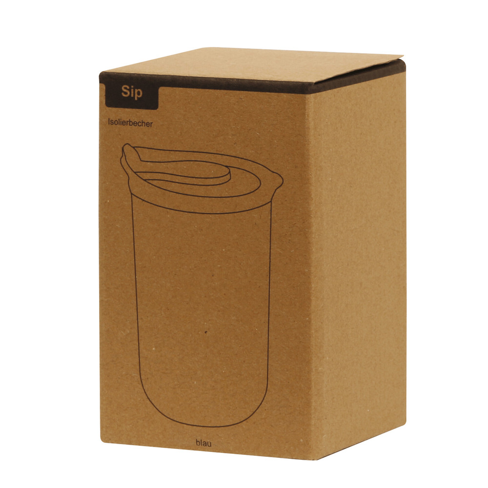Trinkbecher SIP, doppelwandig: innen aus Edelstahl und außen aus Kunststoff, transparenter Kunststoff-Deckel mit Silikon-Dichtring und integrierter Trinköffnung (mit Silikon-Abdeckung), Füllmenge ca. 350 ml, hält ca. 2 Stunden warm und bis zu 4 Stunden kalt, nicht geeignet für Heißgetränke, in Box