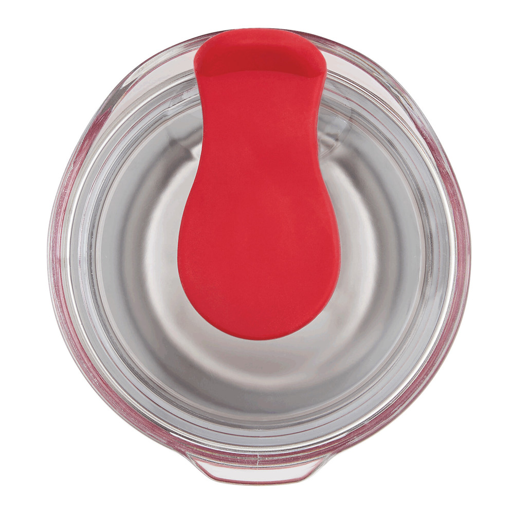 Trinkbecher SIP, doppelwandig: innen aus Edelstahl und außen aus Kunststoff, transparenter Kunststoff-Deckel mit Silikon-Dichtring und integrierter Trinköffnung (mit Silikon-Abdeckung), Füllmenge ca. 350 ml, hält ca. 2 Stunden warm und bis zu 4 Stunden kalt, nicht geeignet für Heißgetränke, in Box