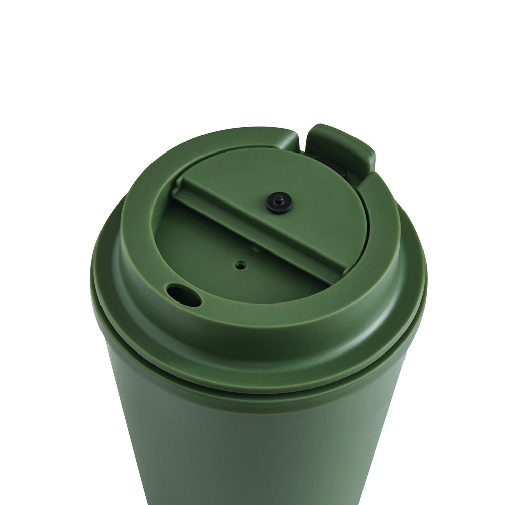 Trinkbecher FLEXICUP, doppelwandig: innen und außen aus Kunststoff, farbig passender Deckel mit sicherem Schraubverschluss, Silikon-Dichtring und integrierter Trinköffnung zum Aufklappen, Füllmenge ca. 350 ml, hält ca. 2 Stunden warm und bis zu 4 Stunden kalt