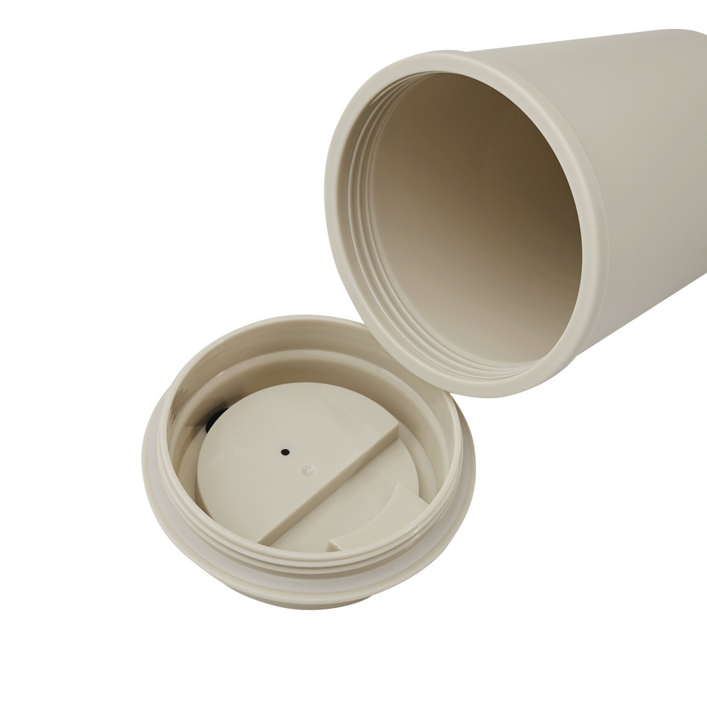 Trinkbecher FLEXICUP, doppelwandig: innen und außen aus Kunststoff, farbig passender Deckel mit sicherem Schraubverschluss, Silikon-Dichtring und integrierter Trinköffnung zum Aufklappen, Füllmenge ca. 350 ml, hält ca. 2 Stunden warm und bis zu 4 Stunden kalt