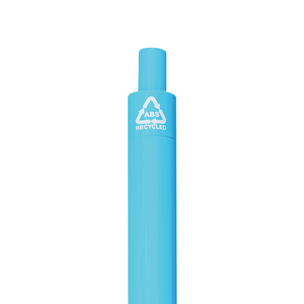 Kugelschreiber STACCATO: mit Schaft aus recyceltem Kunststoff, geriffelte Griffzone, Druckmechanismus, blauschreibend