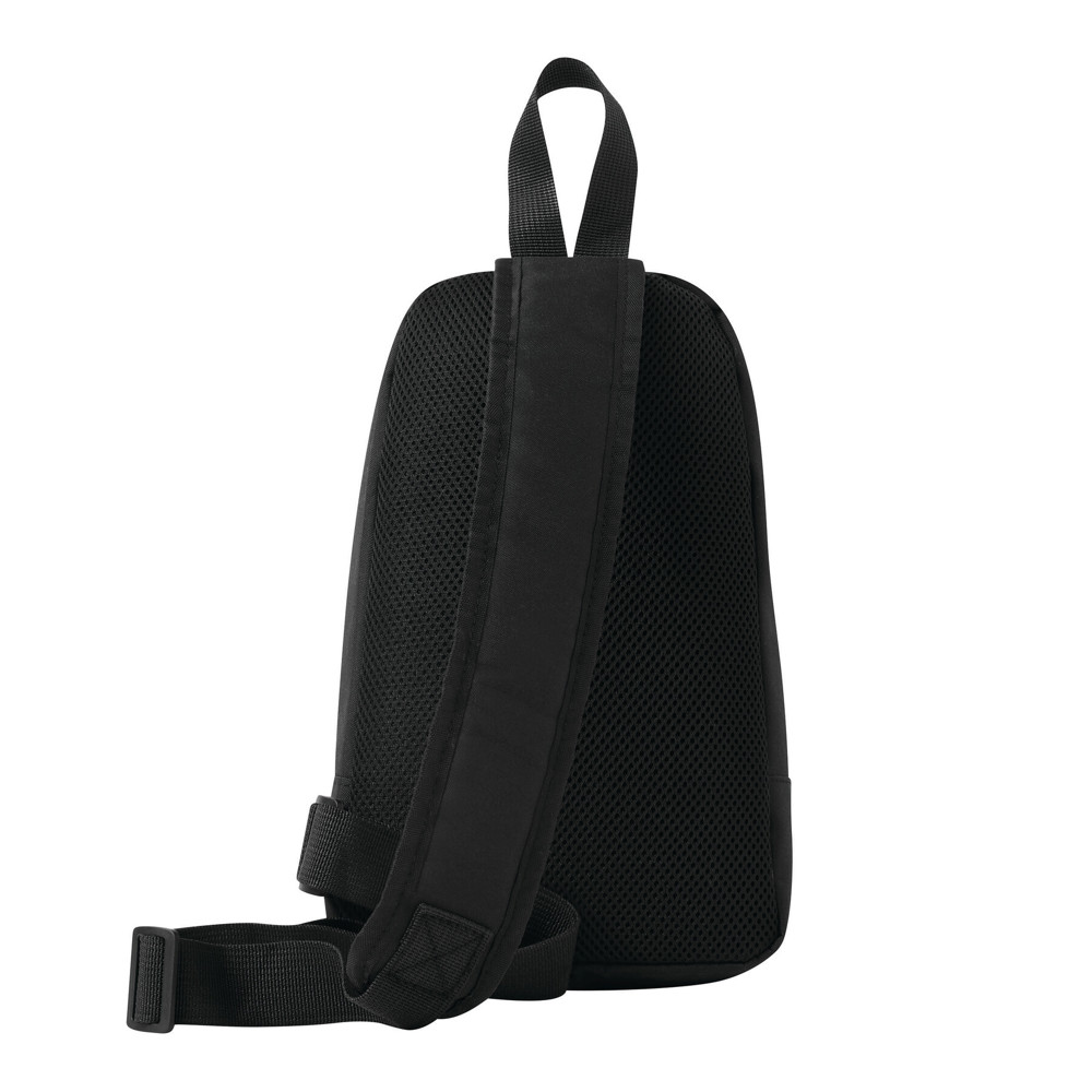Umhängetasche EDERN: aus recyceltem Polyester (RPET), Reißverschluss-Hauptfach mit Einsteckfach, Reißverschluss-Vorfach, Trageschlaufe, gepolsterter und verstellbarer Schultergurt, gepolsterter Rückenbereich