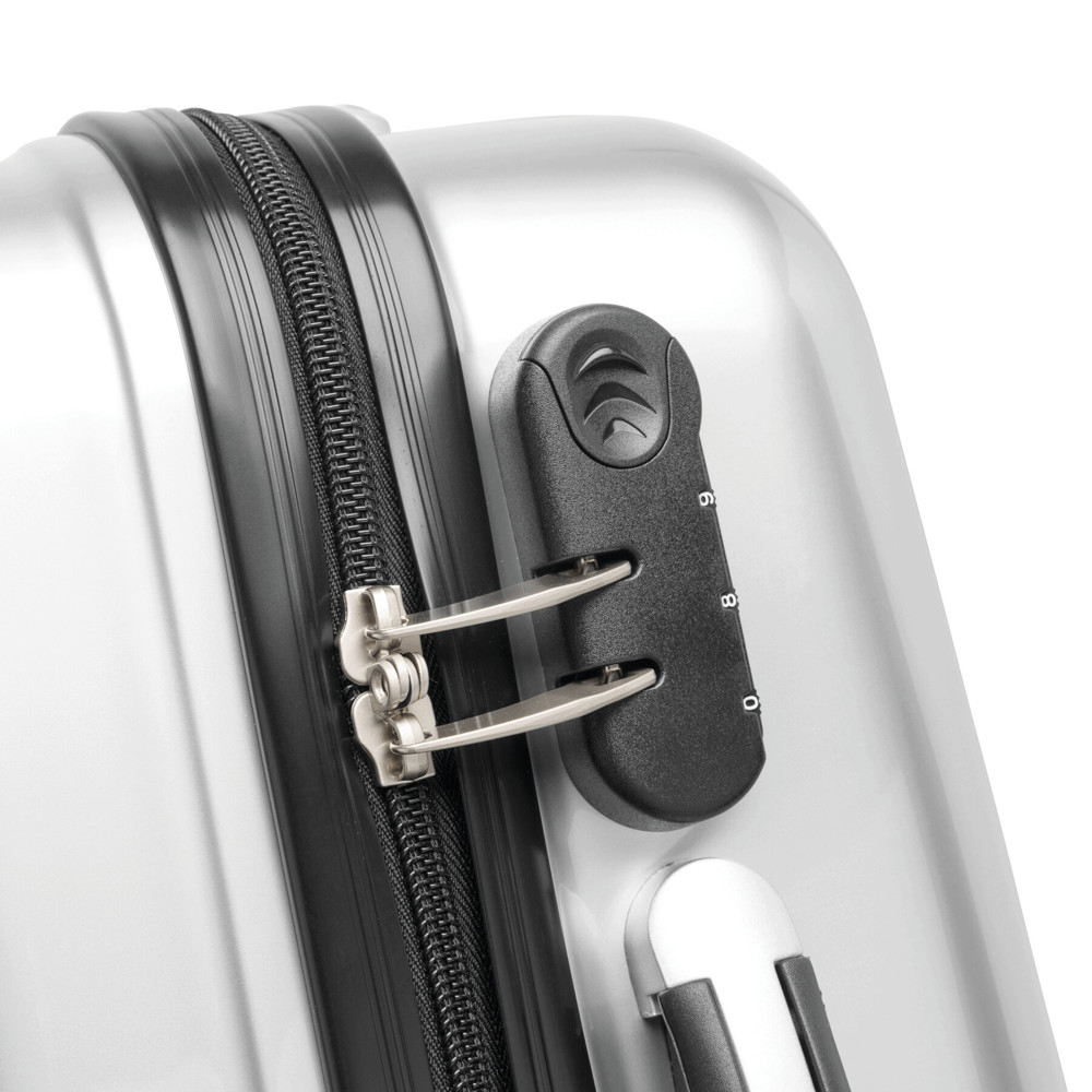 Trolley-Bordcase ST. TROPEZ: beidseitige Packmöglichkeiten, Koffer-Innenraum komplett gefüttert mit Packtrennwand und Packgurt, arretierbares und versenkbares Trolleygestell, 2 Tragegriffe, 4 seitliche Füße, 4-Rollen-360°-Leichtlauf-Fahrwerk, Zahlenkombinationsschloss – boarding size für Low-Budget-Fluglinien geeignet