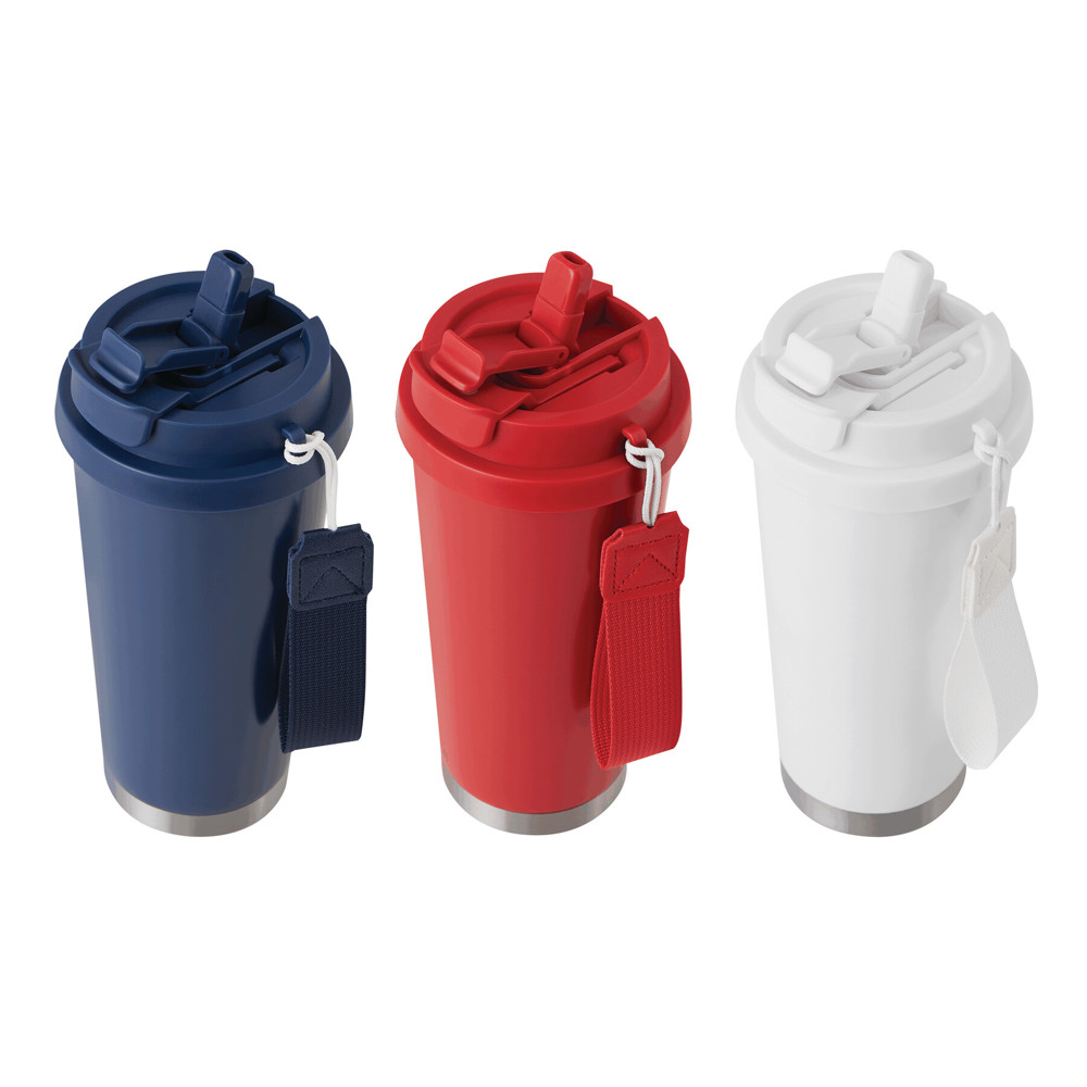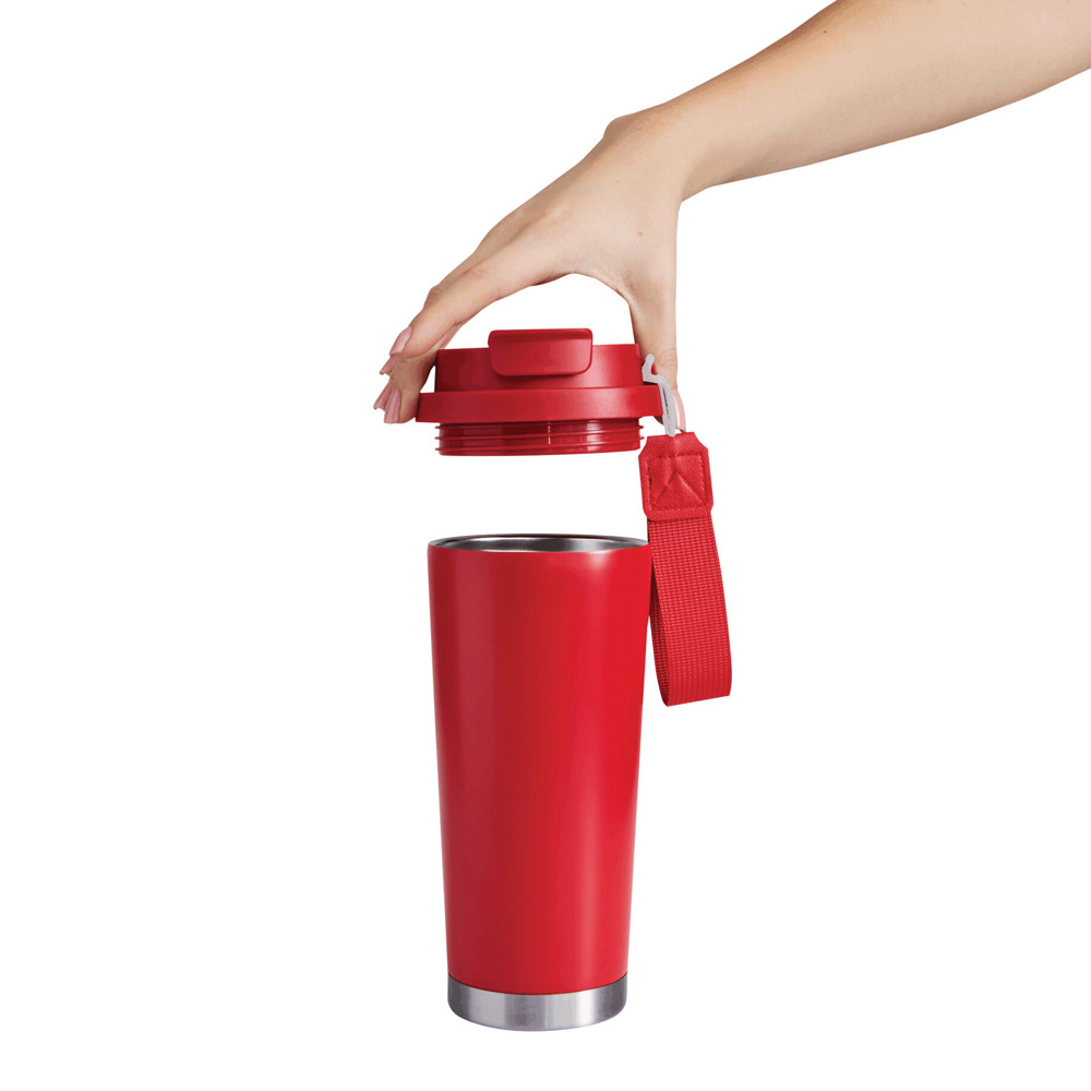 Vakuum-Isolierbecher MUG2GO, doppelwandig: innen aus recyceltem Edelstahl und außen aus Edelstahl, farblich passender 2-in-1-Deckel aus Kunststoff mit sicherem Schraubverschluss, Silikon-Dichtring, integrierter Trinköffnung sowie Trinkhalm zum Aufklappen und RPET-Trageschlaufe, Füllmenge ca. 500 ml, hält ca. 8 Stunden warm und bis zu 12 Stunden kalt, in Box