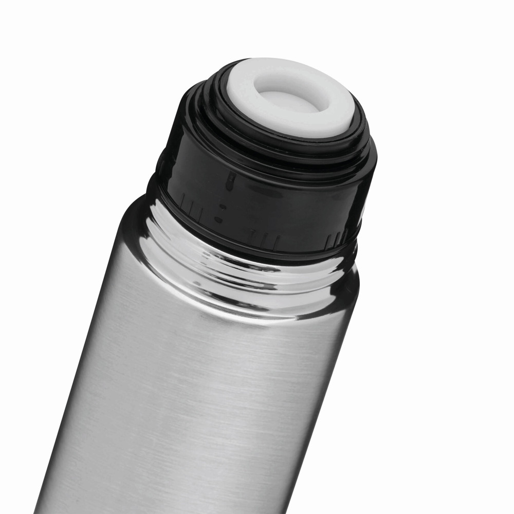 Vakuum-Isolierkanne WARM SOUL M, doppelwandig: innen und außen aus Edelstahl, Schraubverschluss-Deckel (innen mit Kunststoff) als Becher verwendbar, Kunststoff-Ausgießer mit Schnellverschluss und Schraubgewinde, Füllmenge ca. 0,5 Liter, in Geschenkbox