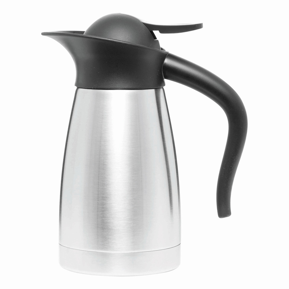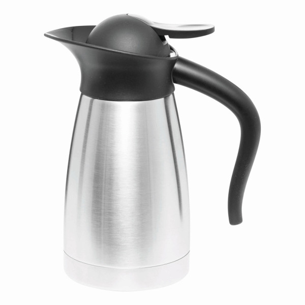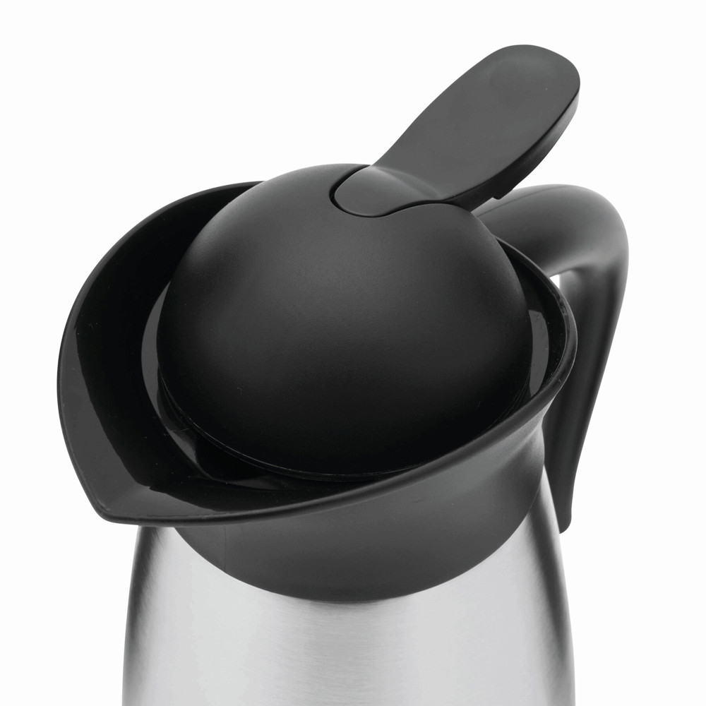 Edelstahl-Vakuum Isolierkanne AWAKE: doppelwandig, Deckel mit Schraubverschluss, Silikon-Dichtring und Einhand-Ausgießautomatik, Füllmenge ca. 1 Liter, in Box