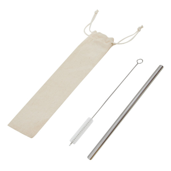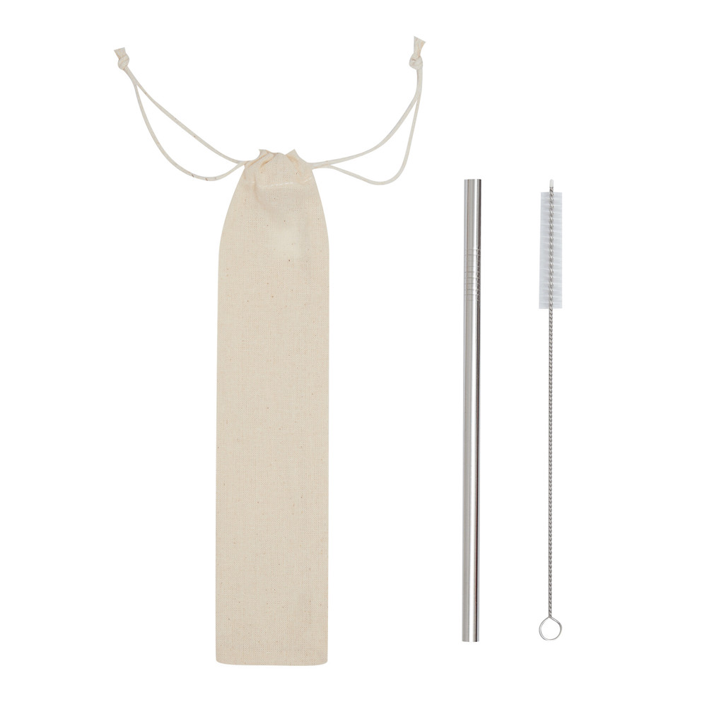 Edelstahl-Strohhalm DRINK ELEGANT: inkl. Bürste für eine bequeme Reinigung, im umweltfreundlichen Baumwollbeutel