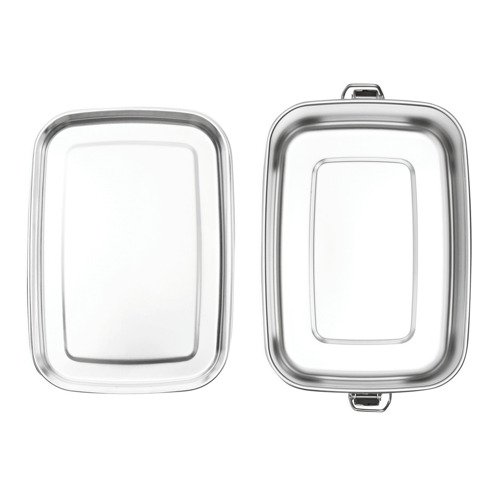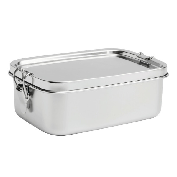 Edelstahl Lunchbox STRONG BREAK: mit Halteklammern zum Verschließen und Deckel mit Silikon-Dichtring für sicheren Transport, Füllmenge ca. 1.100 ml, in Box