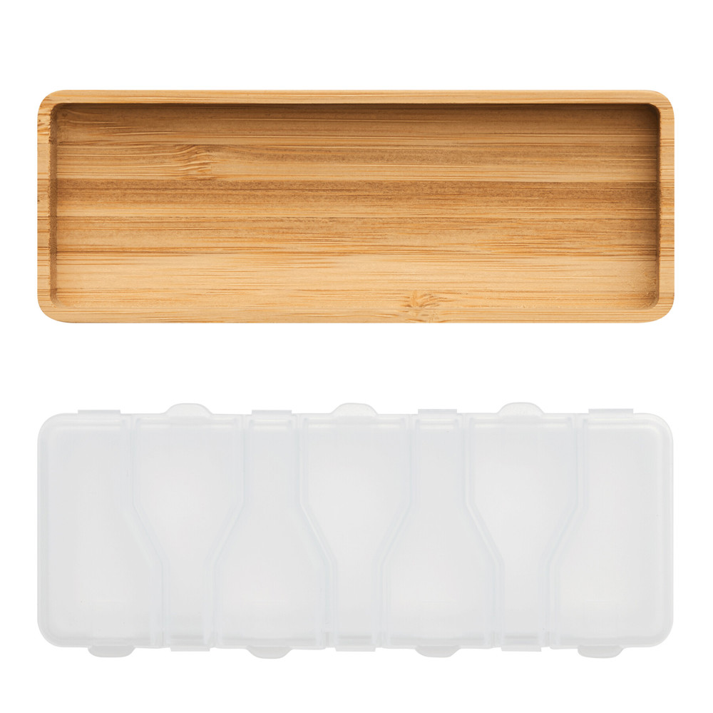 Tablettendose SORTED: mit 7 separaten Fächern, aus Bambus mit milchig-transparenten Kunststoff-Deckeln