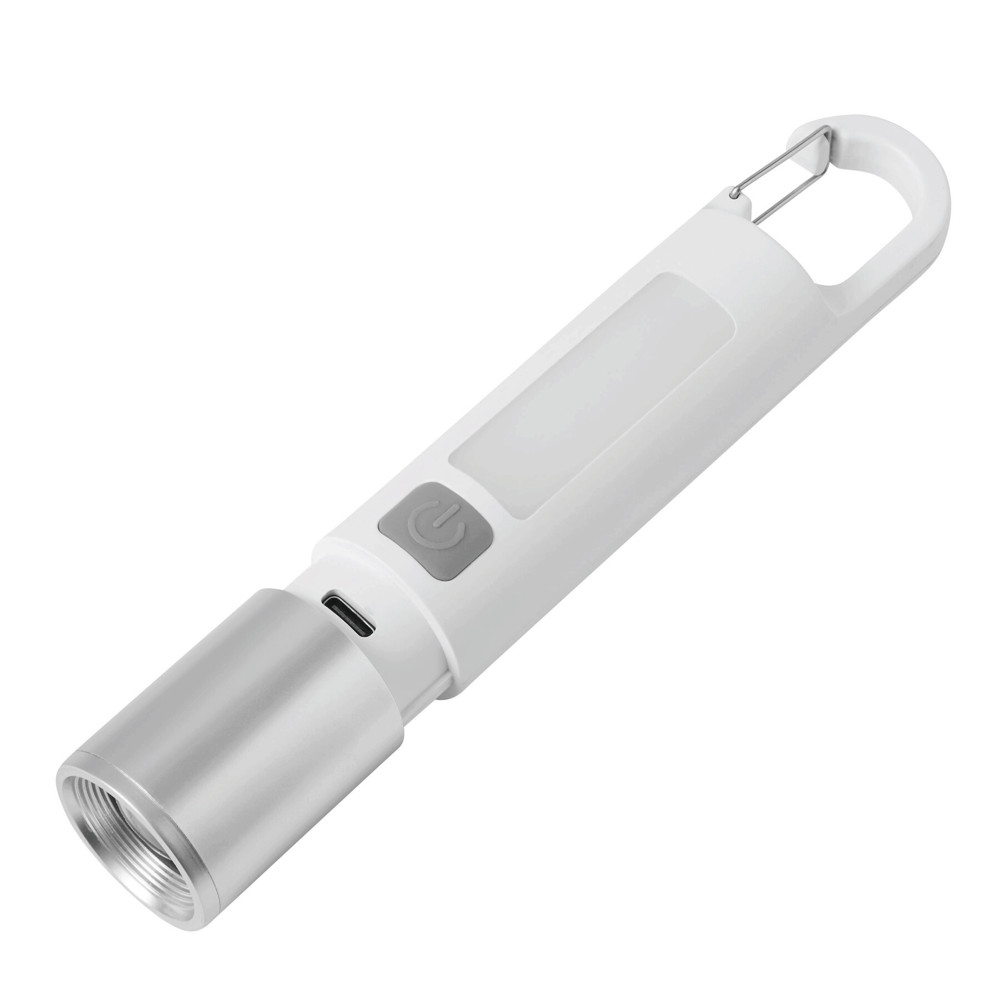 Aufladbare LED-Taschenlampe FLOODLIGHT: Front-LED mit 2 Leucht-Modi (Dauerlicht und Blinklicht) und verstellbarem Lichtkegel, Lichtfeld mit 7 LED an der Seite, gummierter An- und Ausschalter, mit Karabinerhaken zum Befestigen (der Karabiner ist NICHT als Sicherung beim Klettern geeignet), leistungsstarker Lithium-Akku, Kapazität: 800 mAh, inkl. USB-Ladekabel mit USB Typ C Stecker (Länge ca. 30 cm), in Box