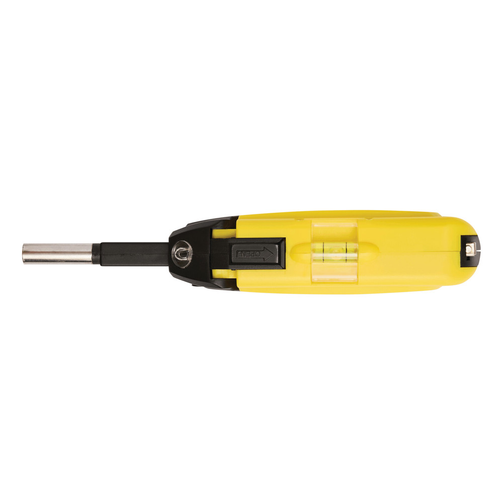 Multifunktionswerkzeug HINGED: mit Wasserwaage, ausklappbarem Schraubendreher mit 12 verschiedenen Bits, LED-Licht, Hammer und Maßband 1 m, batteriebetrieben (2x CR2032 Knopfzellen enthalten), in Box
