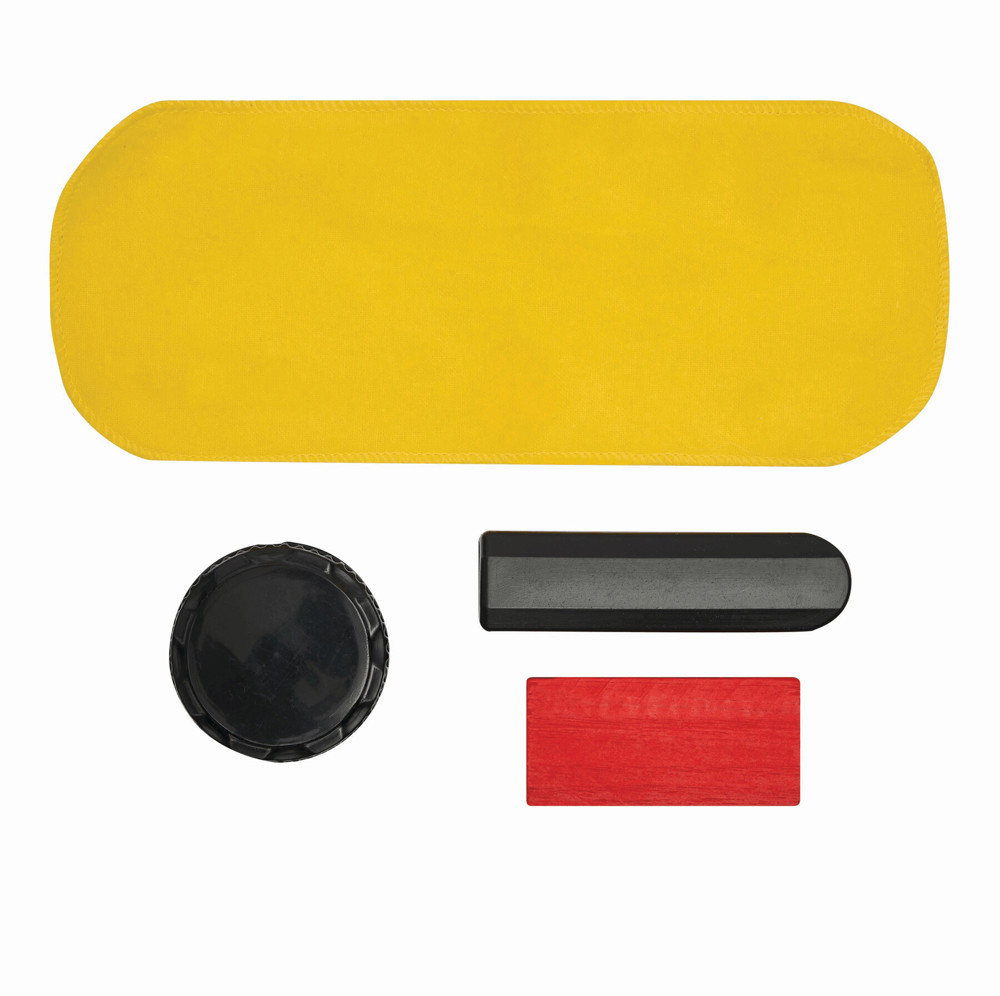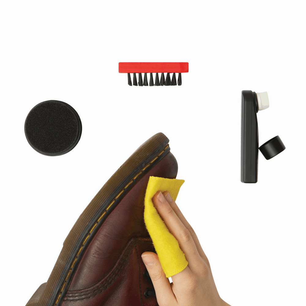 Schuhputzset SMALL SHINE: bestehend aus Holzbürste, Poliertuch (ca. 23 x 10 cm), farbloses Schuhöl mit Schwammapplikator, Schwamm mit farblosem Silikonöl, in transparenter Tasche mit Zipper
