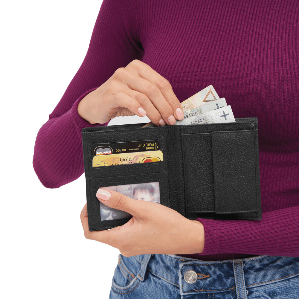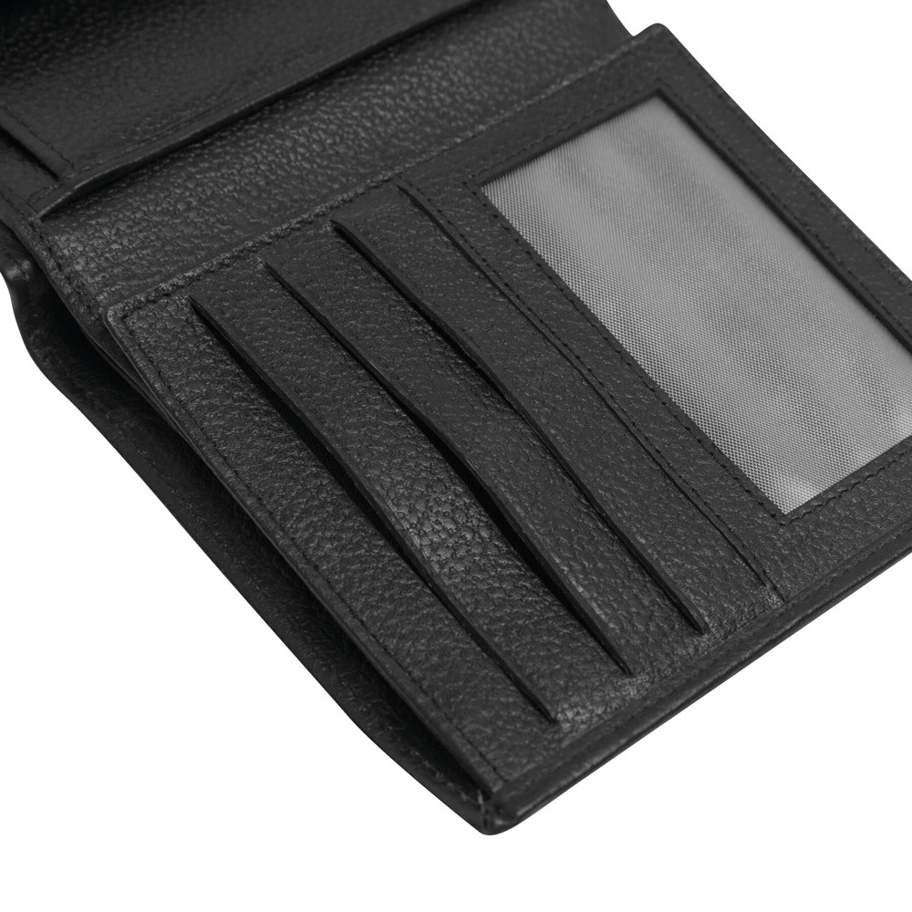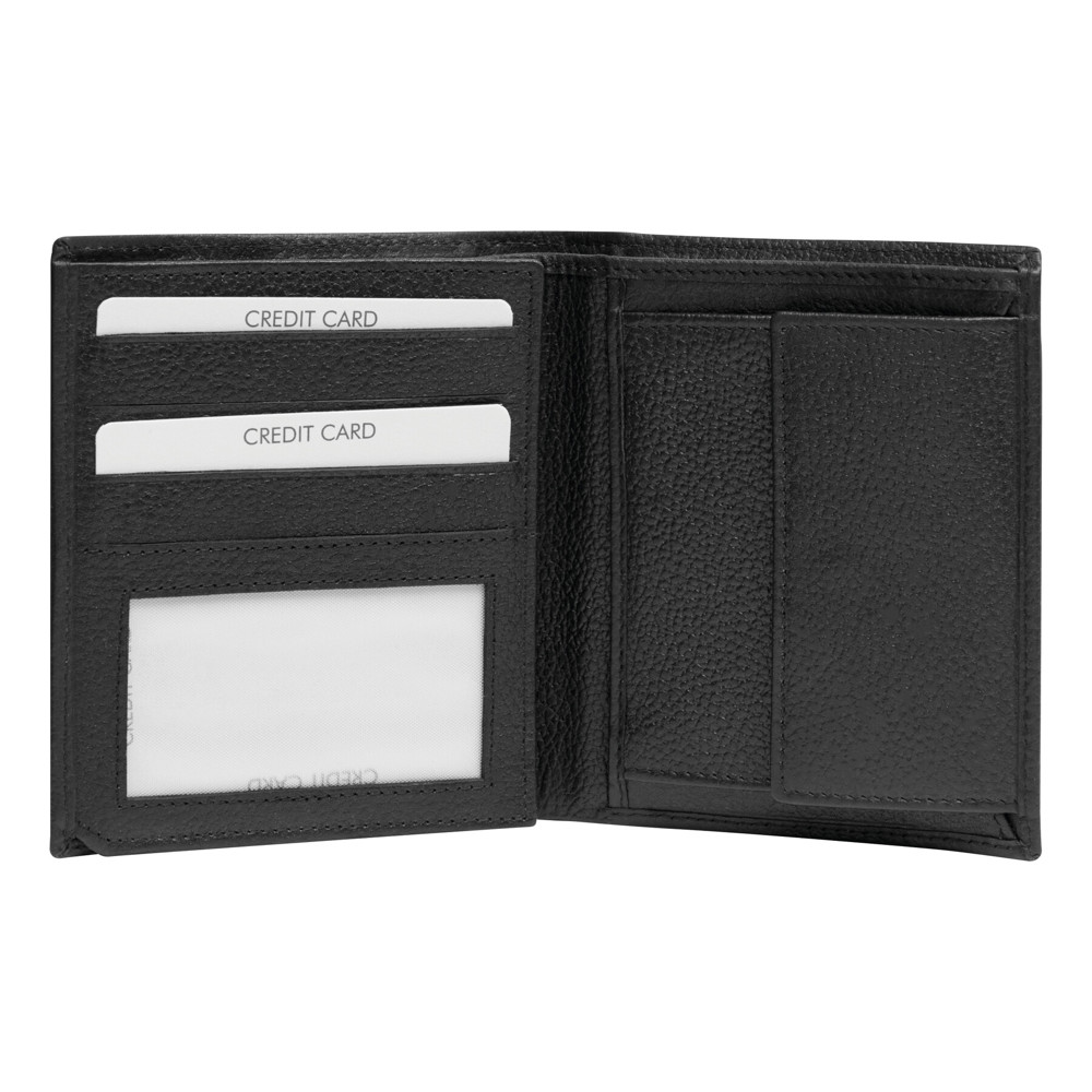 Echtleder-Geldbörse MESSINA - im Hochformat: innen 3 Einsteckfächer für Geldkarten, 2 Geldscheinfächer, 1 Münzfach mit Druckknopfverschluss für Kleingeld, 3 Klarsichtfächer, 1 zusätzliches Fach, in Box