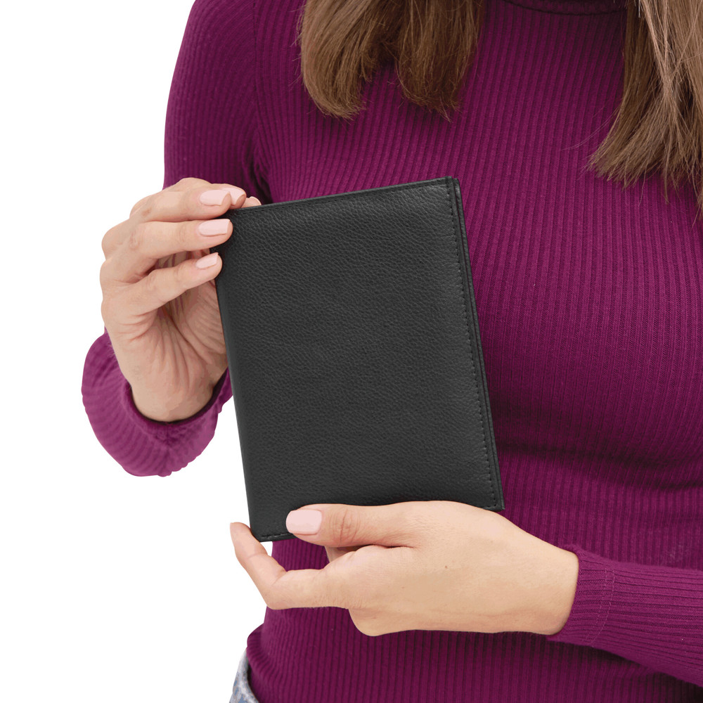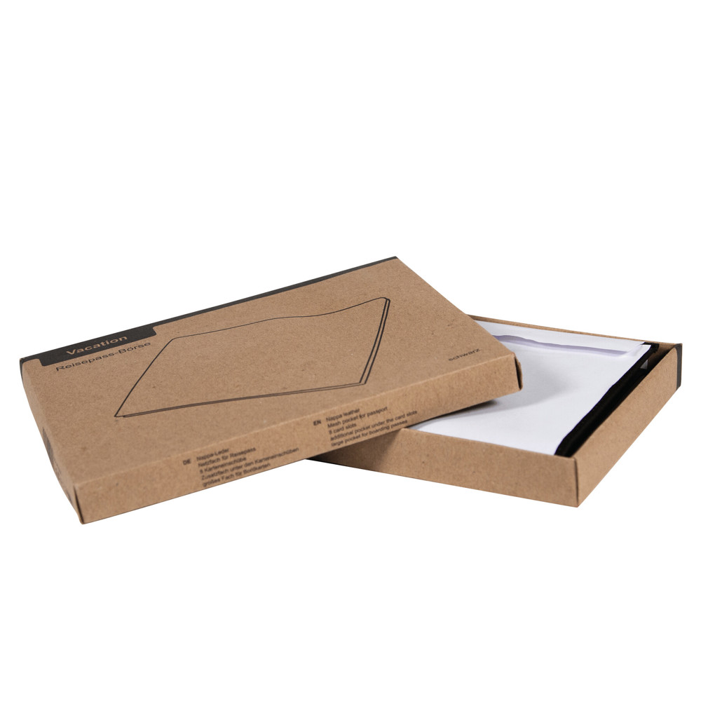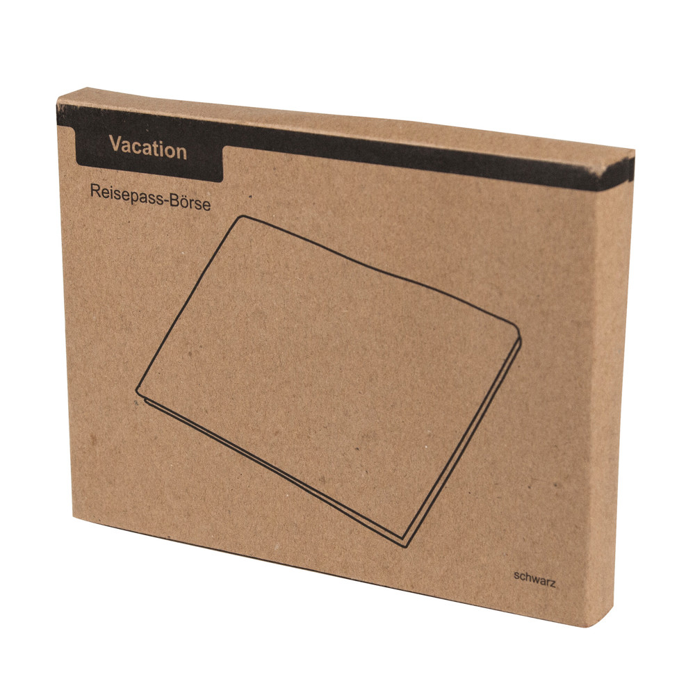 Echtleder-Reisepassbörse VACATION - im Hochformat: handliche Mappe mit 7 Einsteckfächern für Geldkarten, 1 Netzfach, 1 Fach für Bordkarten, 2 zusätzliche Fächer, in Box