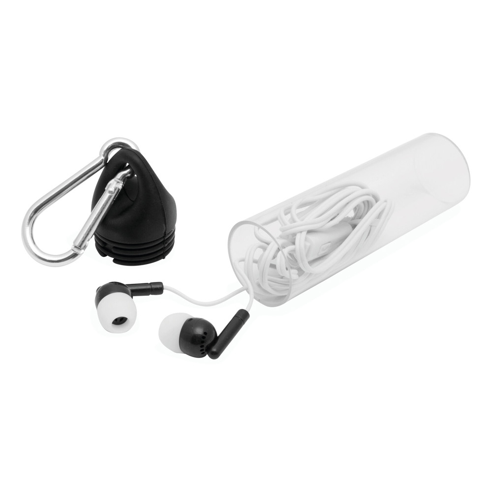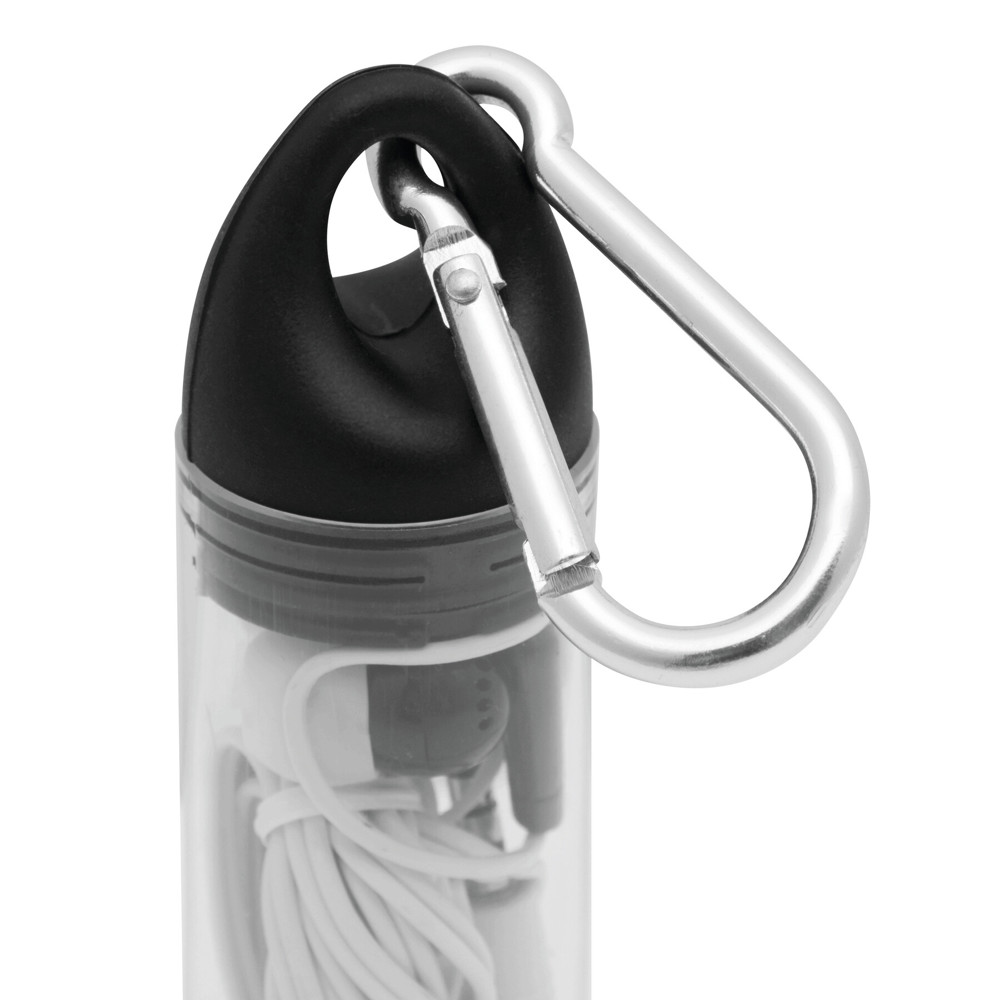 In-Ear-Kopfhörer LISTEN & TALK: inkl. integriertem Mikrofon und Taste für die Rufannahme, 3,5 mm Klinkenstecker, Kabellänge ca. 120 cm, im Kunststoffetui mit farblich passendem Verschluss und Karabinerhaken aus Aluminium (der Karabiner ist NICHT als Sicherung beim Klettern geeignet)