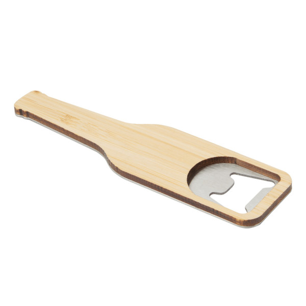 Bambus-Flaschenöffner MY BEER: in Flaschenform, Edelstahl-Rückseite mit Magneten