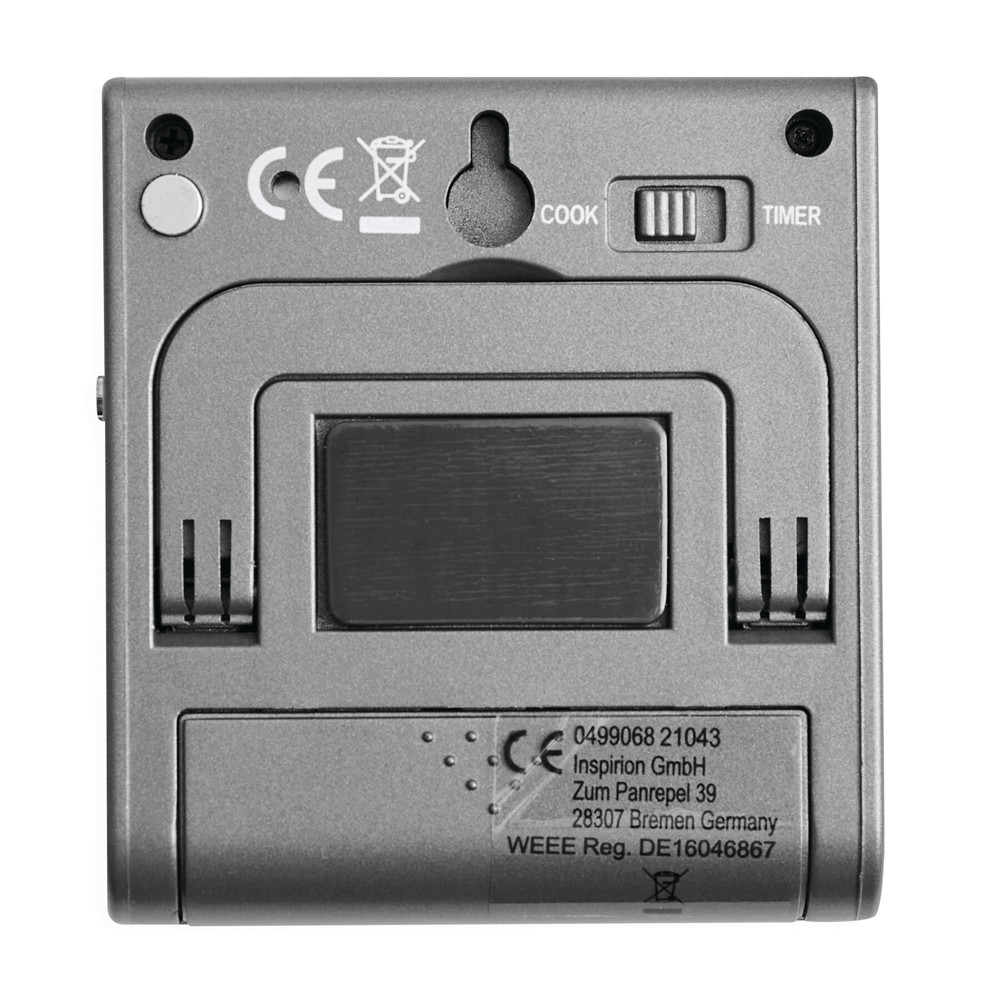 Kochthermometer GOURMET: mit Edelstahlfront, Spieß mit hitzebeständigem Kabel, Hitzealarm für Ziel-Temperatur, Timer (auch als Eieruhr verwendbar), 3 Kontrollknöpfe und LCD-Anzeige (für °C und °F), batteriebetrieben (1x AAA Batterien nicht enthalten), in Box