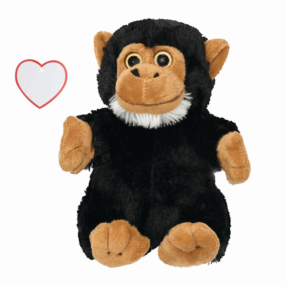Plüsch-Affe JERRIE: mit weichem Fell, in sitzender Position, mit Herz zum Bedrucken