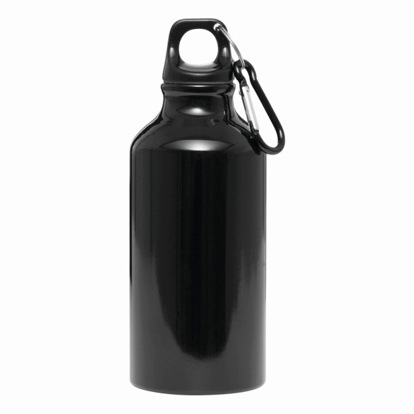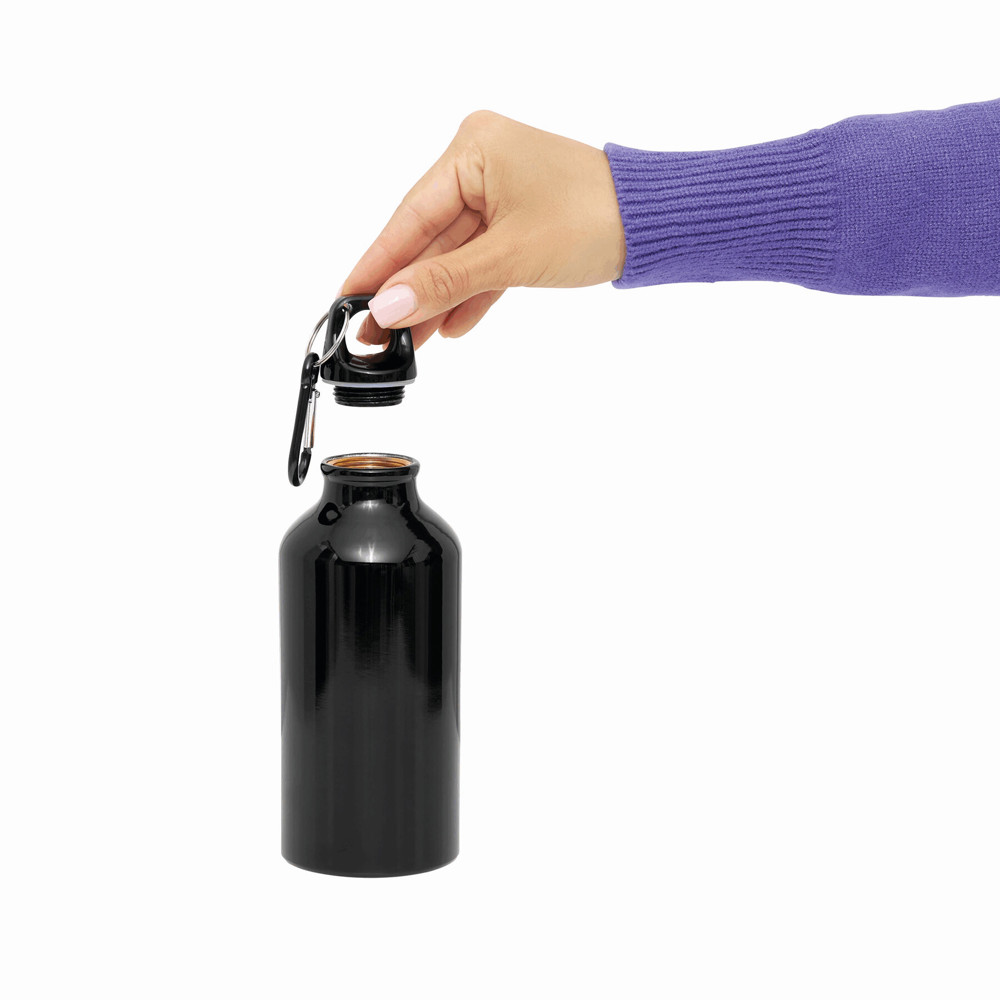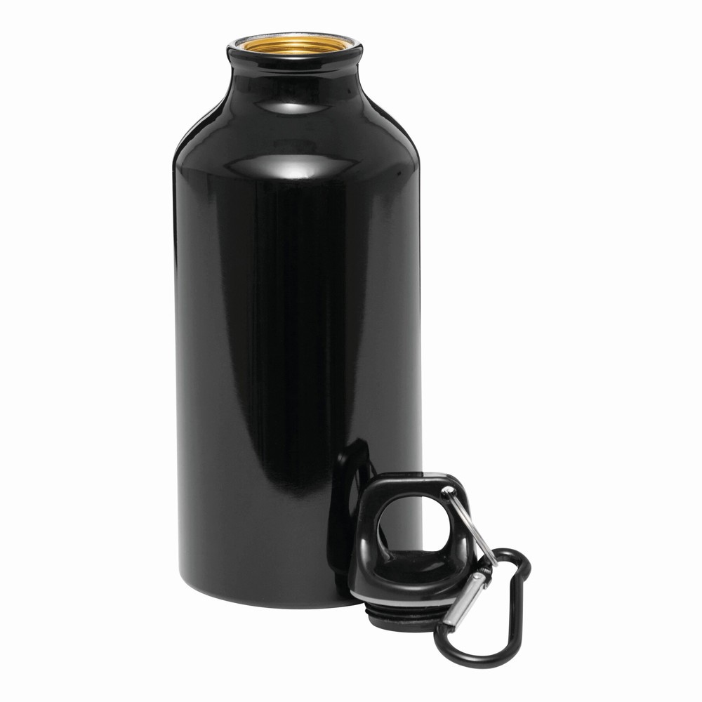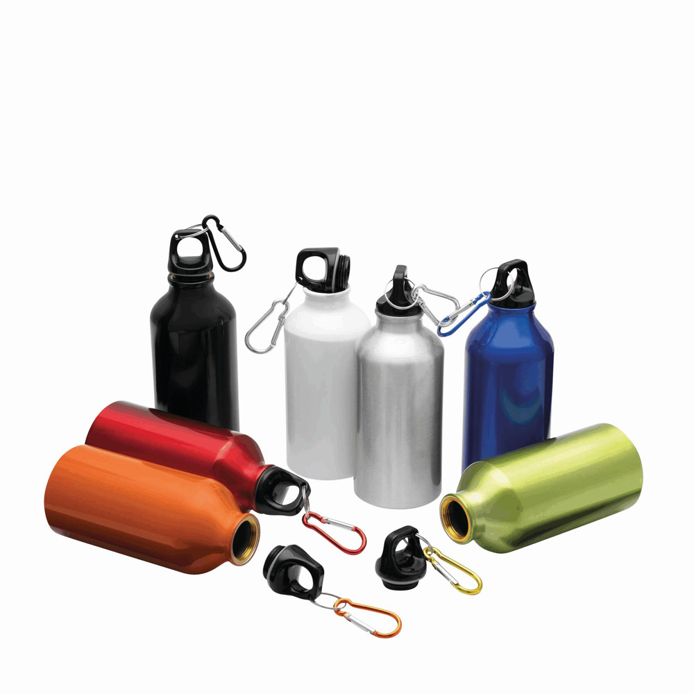 Aluminium-Trinkflasche TRANSIT: Kunststoffverschluss mit farblich abgestimmtem Karabinerhaken (der Karabiner ist NICHT als Sicherung beim Klettern geeignet), Füllmenge ca. 400 ml