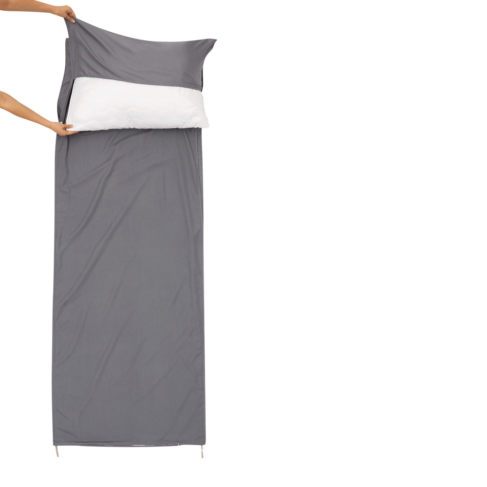 Reiseschlafsack VACATION VIBES: ultra leicht (ca. 355 g), mit Kissenfach, Schlafsack lässt sich durch Druckknöpfe zur Hälfte öffnen, unten mit Reißverschluss für die Füße, 2 Schlaufen zum Fixieren, platzsparend mit Verschluss und Aufbewahrungsbeutel, perfekt zum hygienischen Übernachten