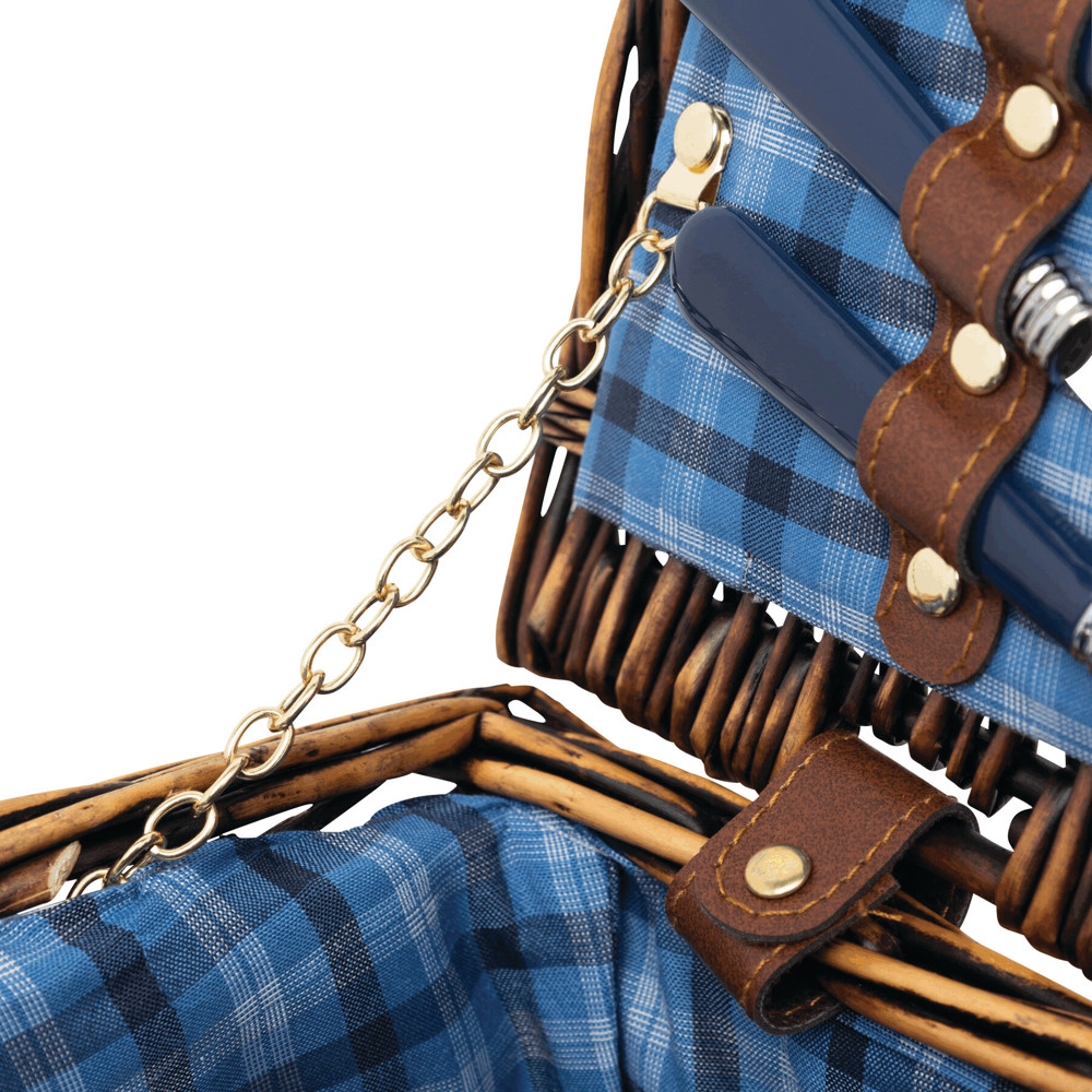 Weiden-Picknickkorb SUMMERTIME für 4 Personen: inkl. Edelstahl-Besteck mit Kunststoffgriffen, Keramikteller, Kunststoff-Weingläser, innen mit Befestigungsgurten, außen seitliche Tragegriffe, Schultergurt und Drehverschluss