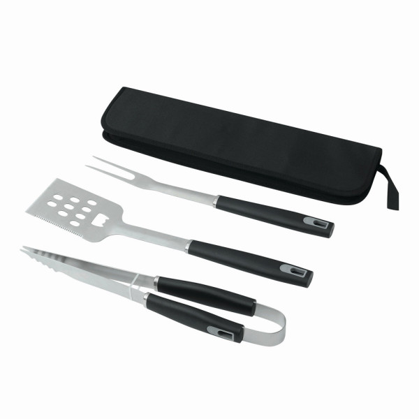 Edelstahl-Grillbesteck PRETTY BBQ: bestehend aus Bratenwender, Fleischgabel und Grillzange, im stabilen Reißverschlussetui mit Trageschlaufe