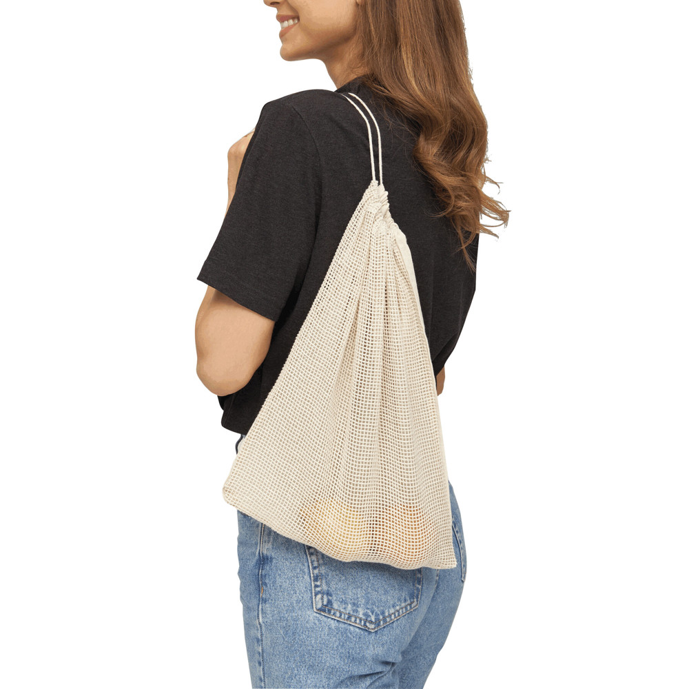 Gemüsenetz SUPER FOOD L: mit Kordelzug schließbar, 1 Seite Netz, 1 Seite Gewebe als ideale Druckfläche, OEKO-TEX® Standard 100