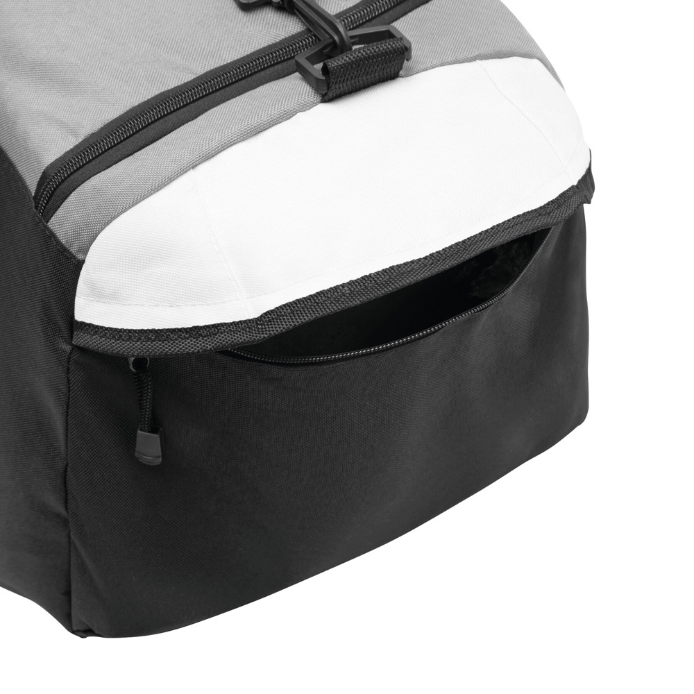 Sporttasche NARVIK: Reißverschluss-Hauptfach, 1 Reißverschluss-Fronttasche, 2 seitliche Reißverschlussfächer, verstärkte Tragegriffe, verstell- und abnehmbarer Schultergurt mit Schulterpolster