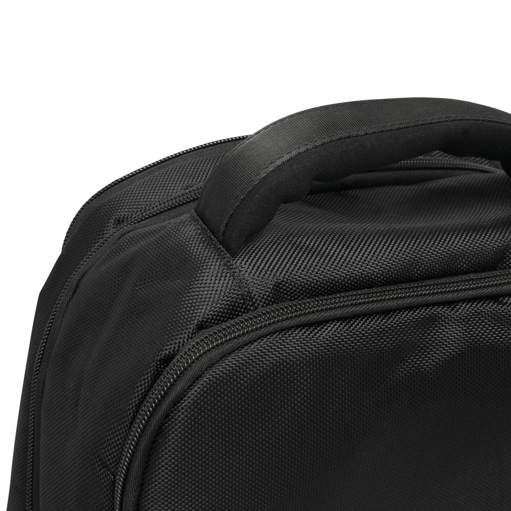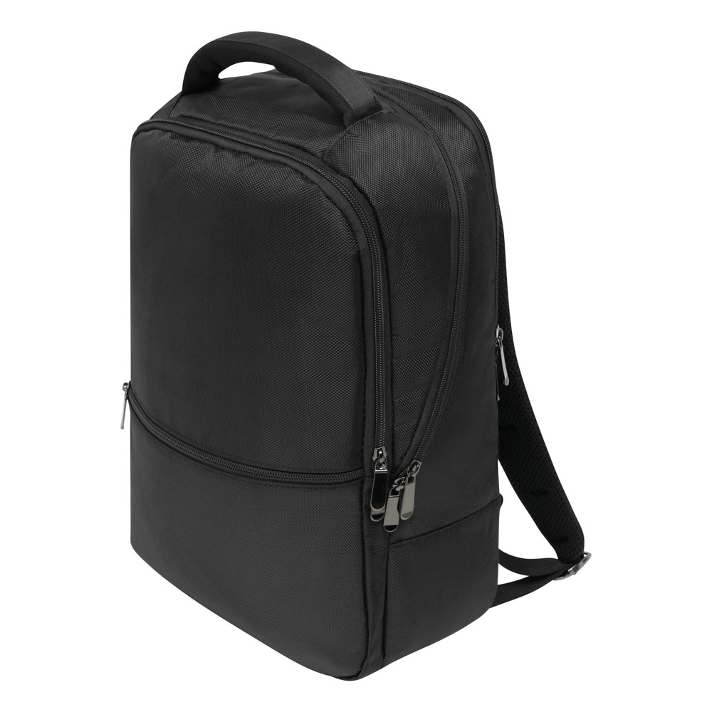 Rucksack OXFORD: 1 kleine Reißverschluss-Vortasche, 1 Vorfach mit kleinem Organizer, 1 Reißverschluss-Hauptfach mit 2 gepolsterten Einsteckfächern für Mediageräte und 1 Reißverschluss-Netzfach, 1 gepolstertes Reißverschluss-Laptopfach, gepolsterte und ergonomisch geformte Schultergurte, gepolsterte Rückseite mit Reporterfunktion
