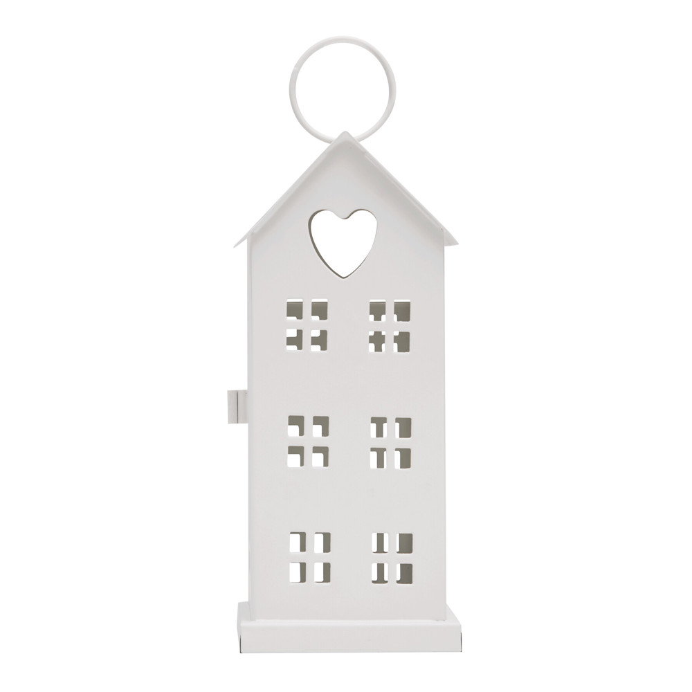 Windlicht SHINY LIGHT: Metall-Häuschen mit je 6 Fenstern auf jeder Seite, Tür zum Öffnen und Befüllen mit Teelicht oder Lichterkette (nicht enthalten), Aufhängeöse am Dach