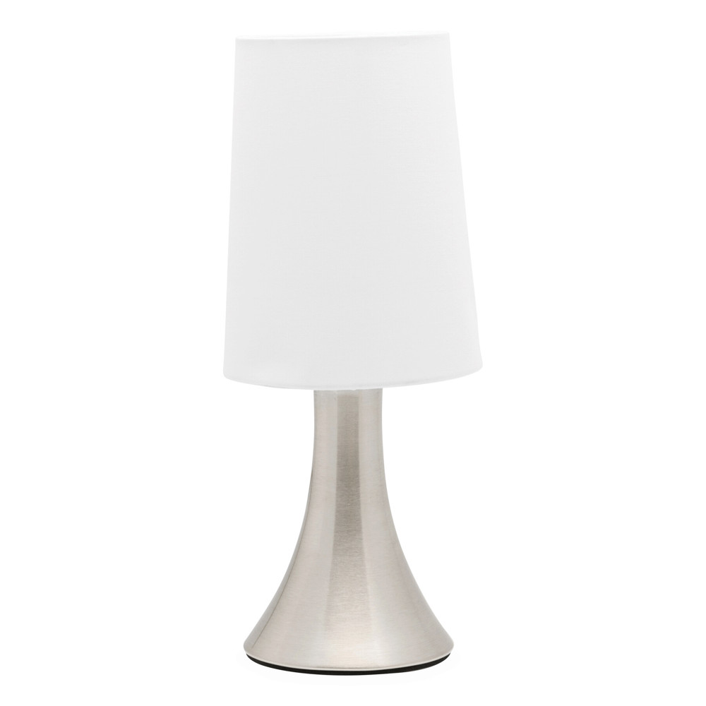 Tischlampe TOUCH ME: mit Touch-Steuerung am Edelstahlfuß und 3-stufiger Dimmer-Funktion, weißem Lampenschirm und 230 Volt-Steckdosenanschluss (Glühbirne nicht enthalten), in Box