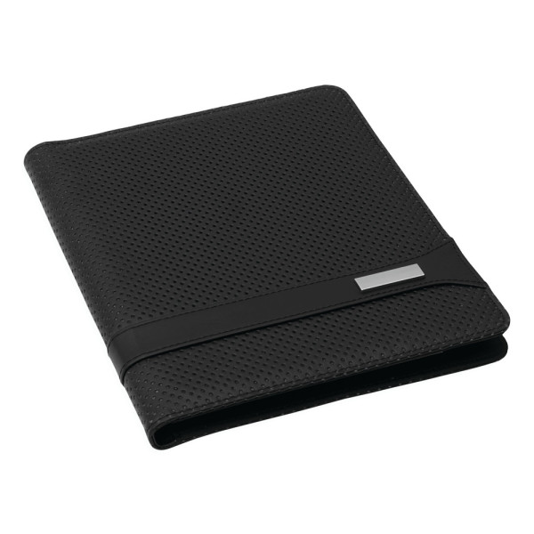 Mini-Tablet-Konferenzmappe HILL DALE TAB im DIN-A5-Format: innen aufklappbarer Tablet-Halter mit elastischen Befestigungsgurten, geeignet für Tablet PCs (7 Zoll) und iPad® mini, inkl. Schreibblock (liniert), Schlaufe für 1 Schreibgerät - außen in gestanzter Loch-Optik mit Metallplättchen für Ihre Werbeanbringung