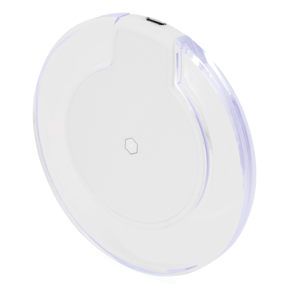 Drahtlose Ladestation INDUCTION: kabelloses Aufladen des Gerätes durch Auflegen auf die Kontaktfläche (Gerät muss für induktives Laden gerüstet sein), inkl. USB-Ladekabel mit Micro-USB Stecker (Länge: ca. 70 cm), rote LED-Leuchte in der Mitte zeigt Betriebsbereitschaft an, während des Ladevorgangs leuchtet transparenter Ring blau, Eingangsleistung: 5V/2A, Ausgangsleistung: 5V/1A, 5 rutschhemmende Füße auf der Unterseite und Gummiring auf der Oberseite, in Box